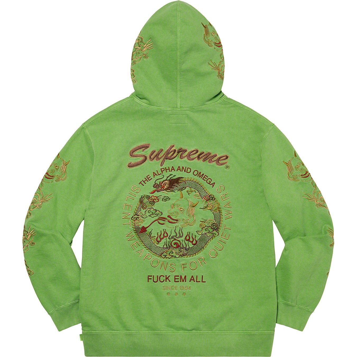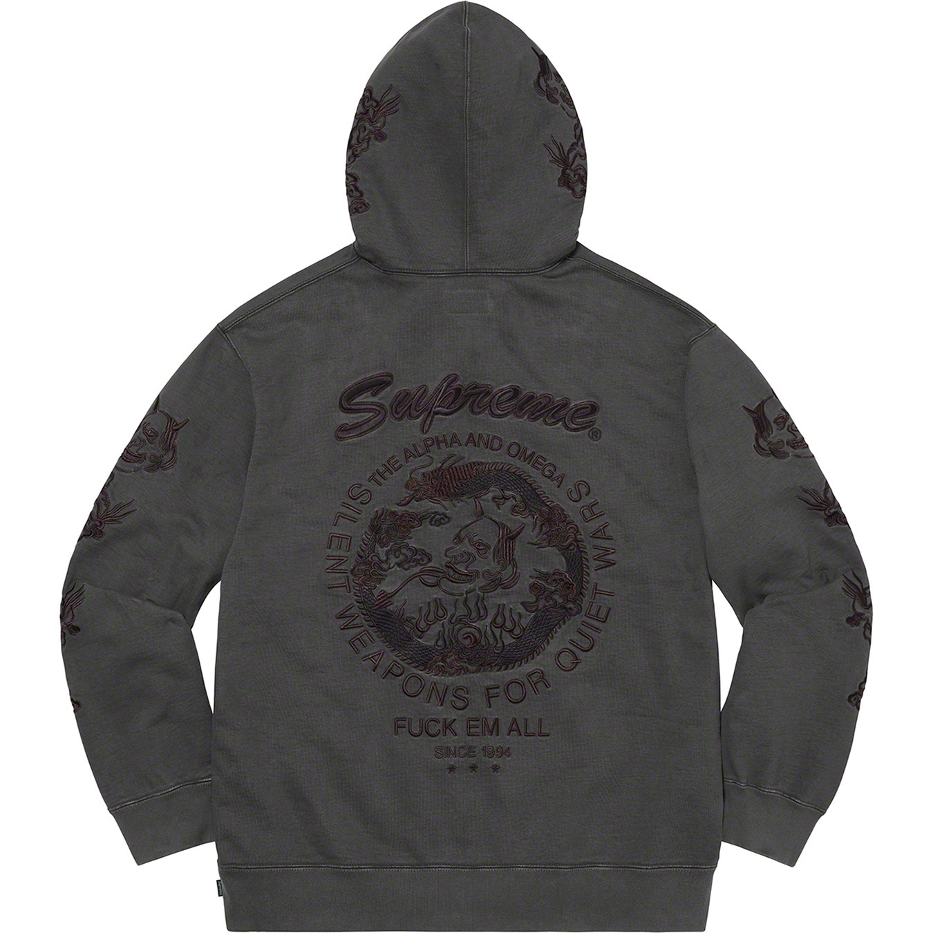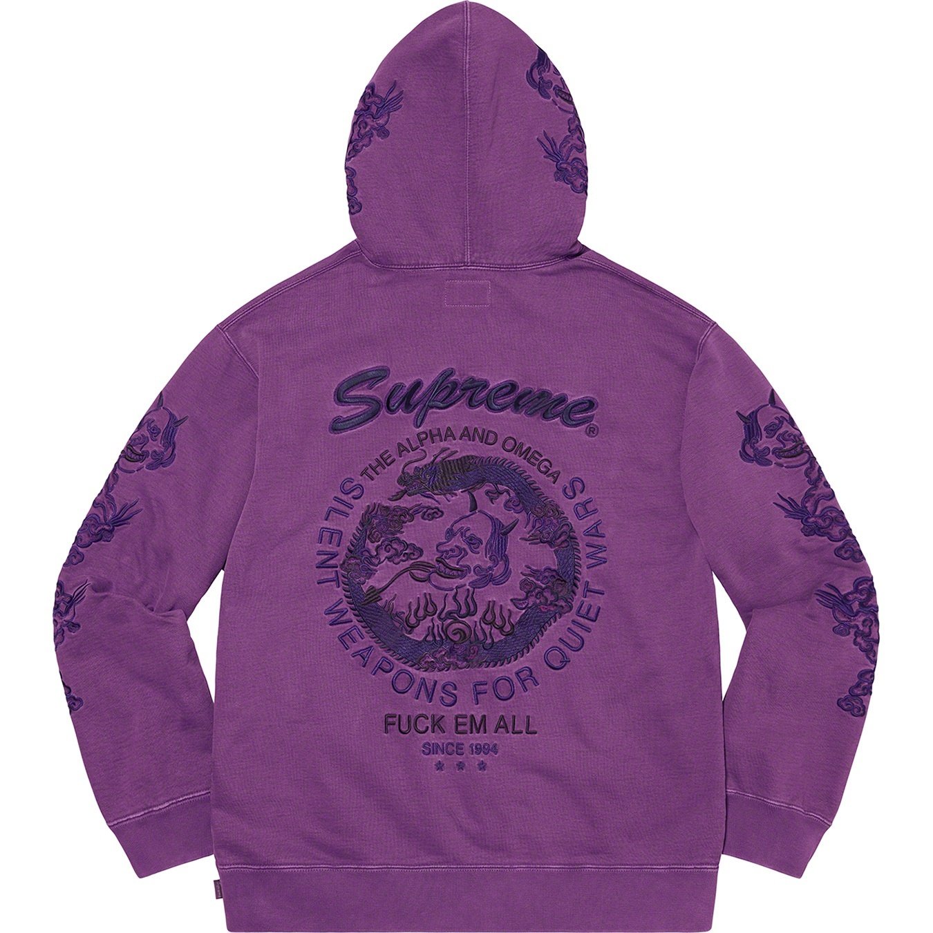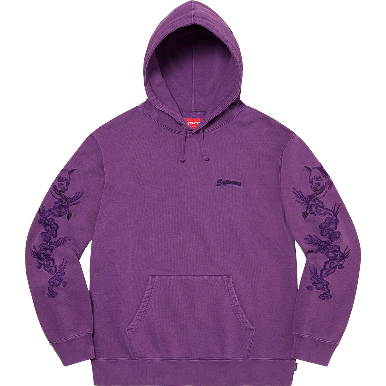 Cotton fleece with pouch pocket. Embroidered logo on chest with embroidered graphics on hood, sleeves and back.