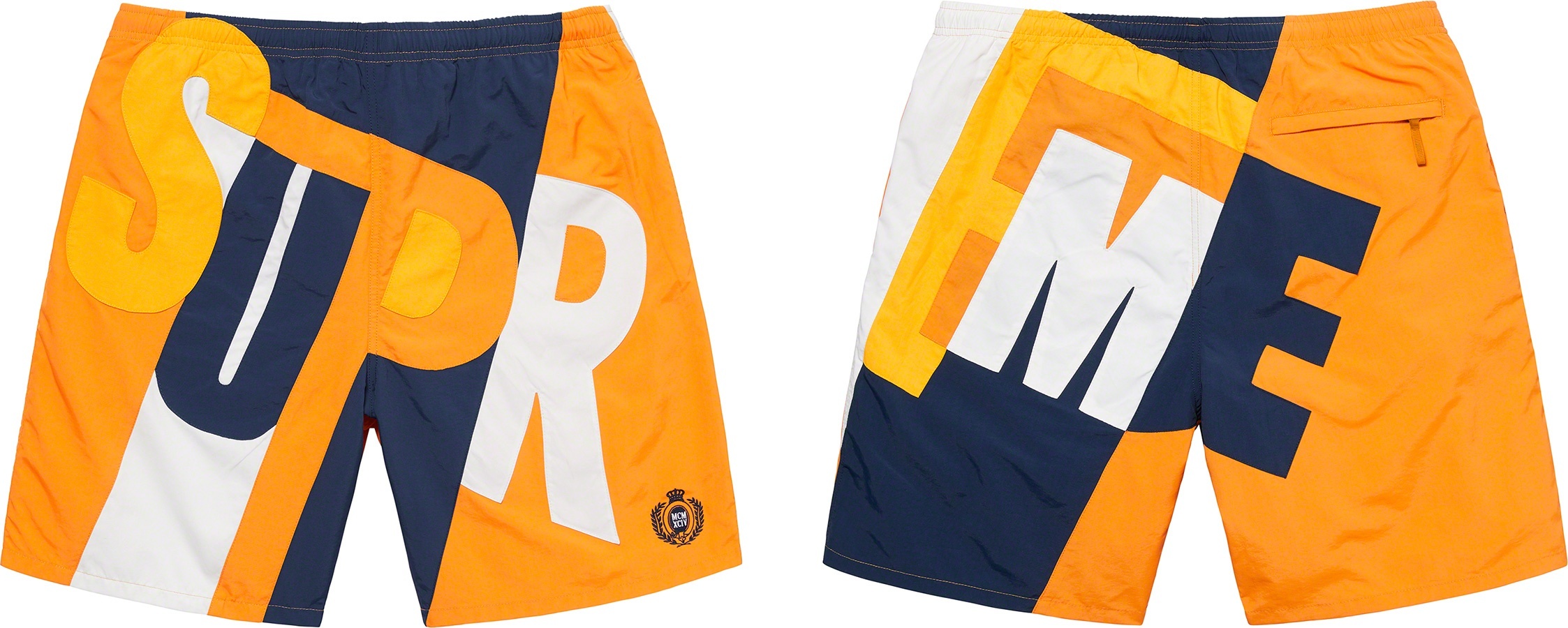 Supplex® nylon taslan with mesh lining. On seam hand pockets and single back zip pocket. Elastic waistband with interior drawcord and interior hanging key pocket. Pieced-in logo at front and back with embroidered logo on lower leg.