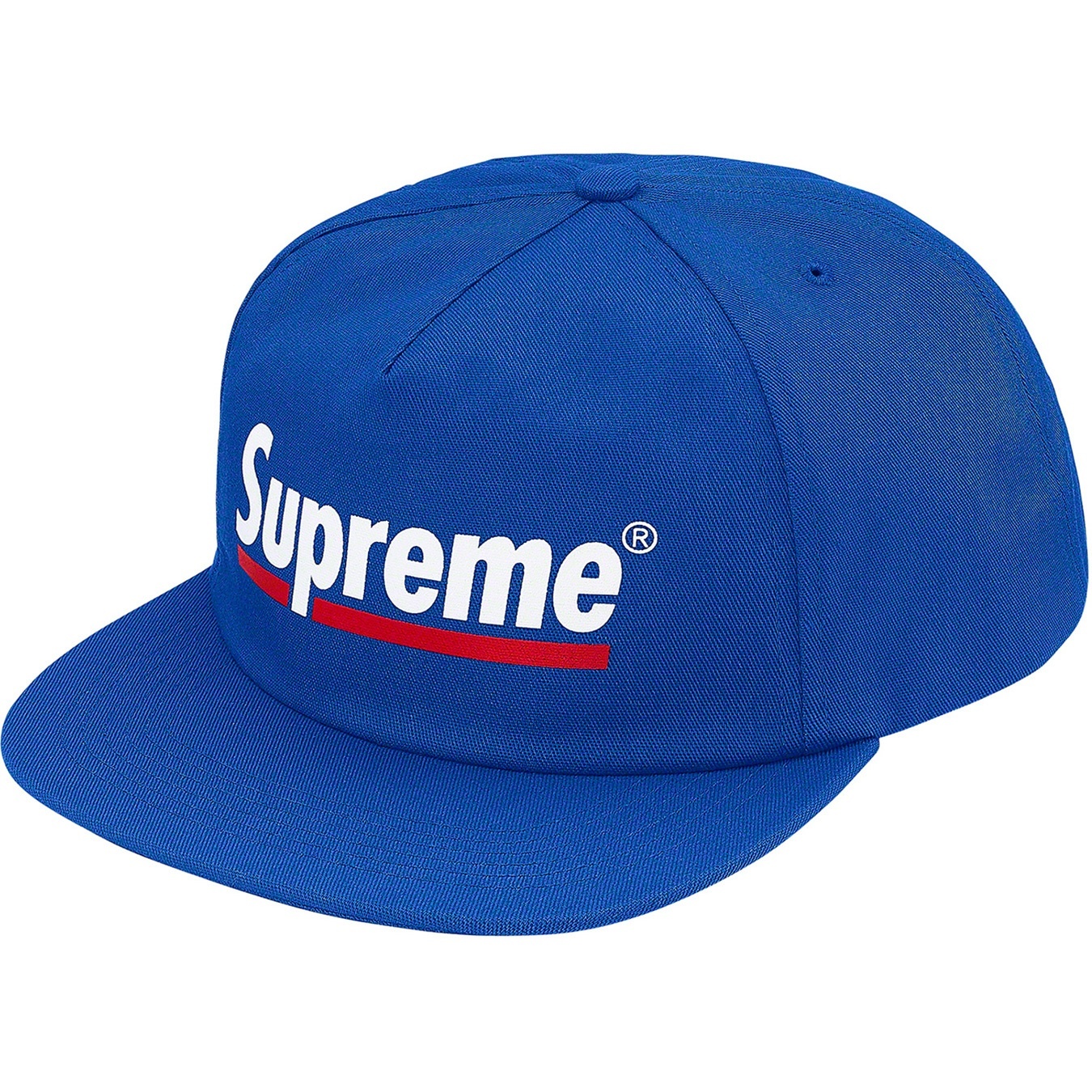 Cotton blend twill 5-Panel hat with snap closure. Printed logo on front and embroidered logo on back.