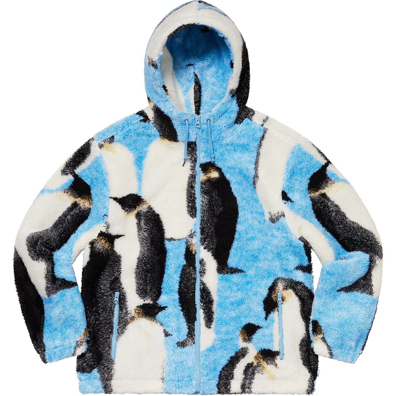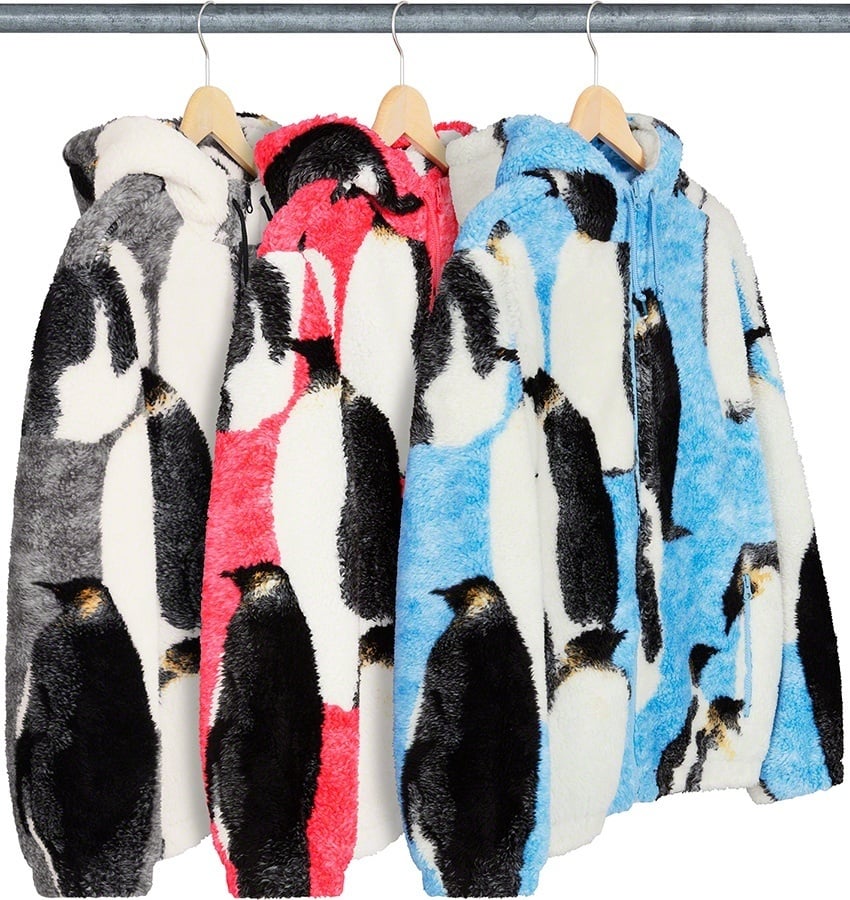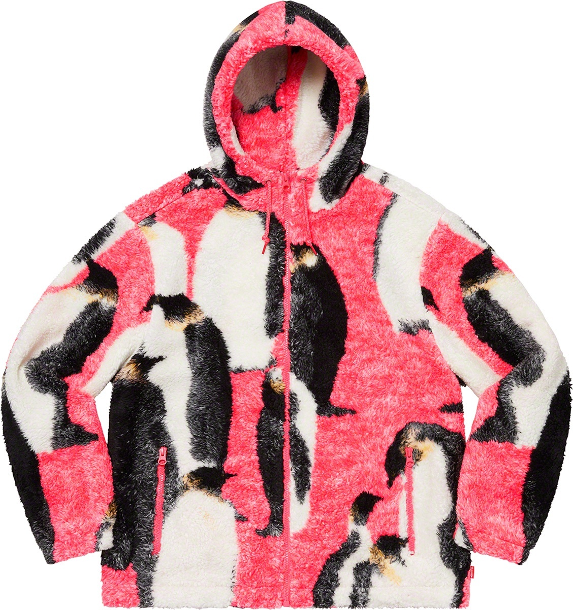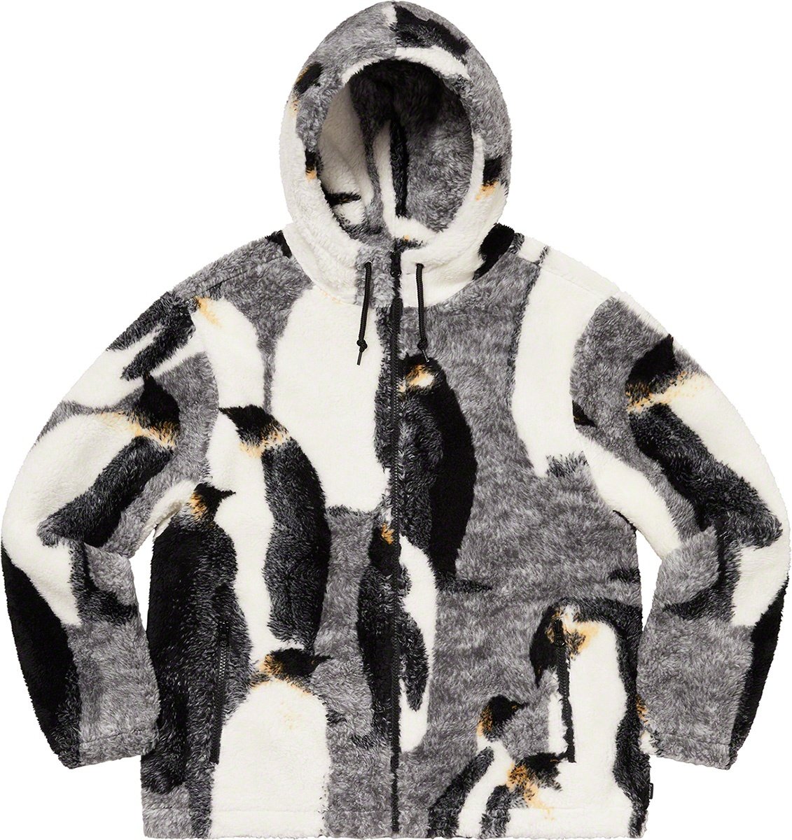 Polar fleece with jacquard pattern and full zip closure. Zip hand pockets at lower front. Elastic cuffs and hem with interior drawcord at hood. Jacquard logo at back.
