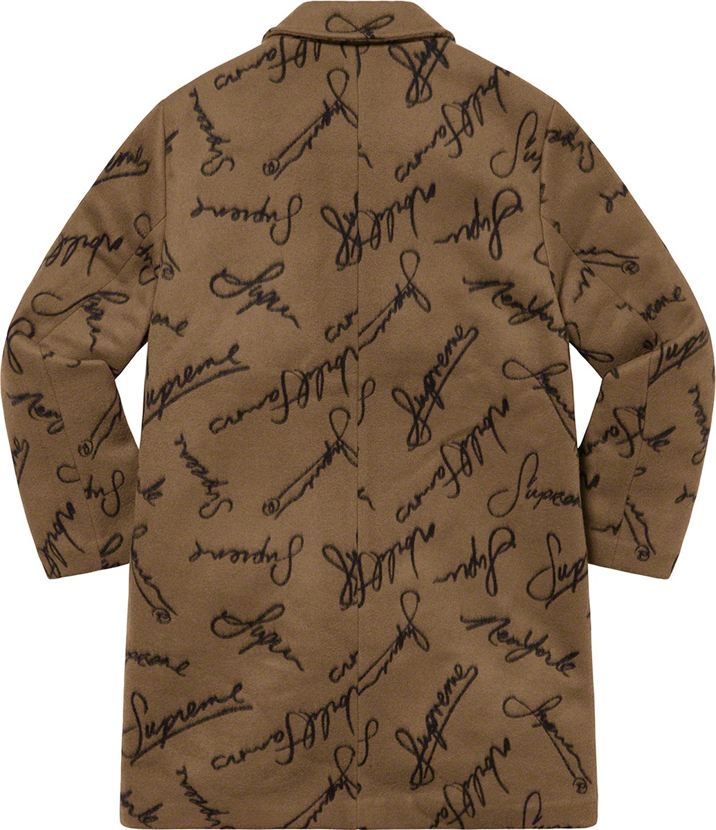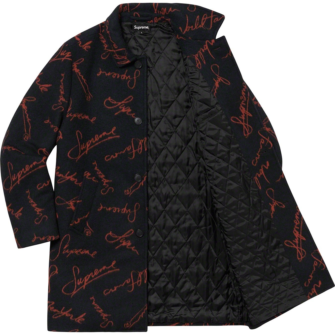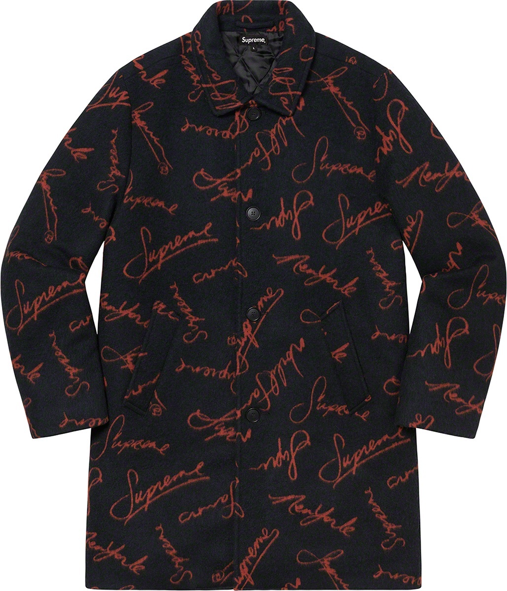 Wool blend with jacquard logo pattern and viscose blend quilted lining. Button front closure with welt hand pockets at lower front and interior chest pocket.