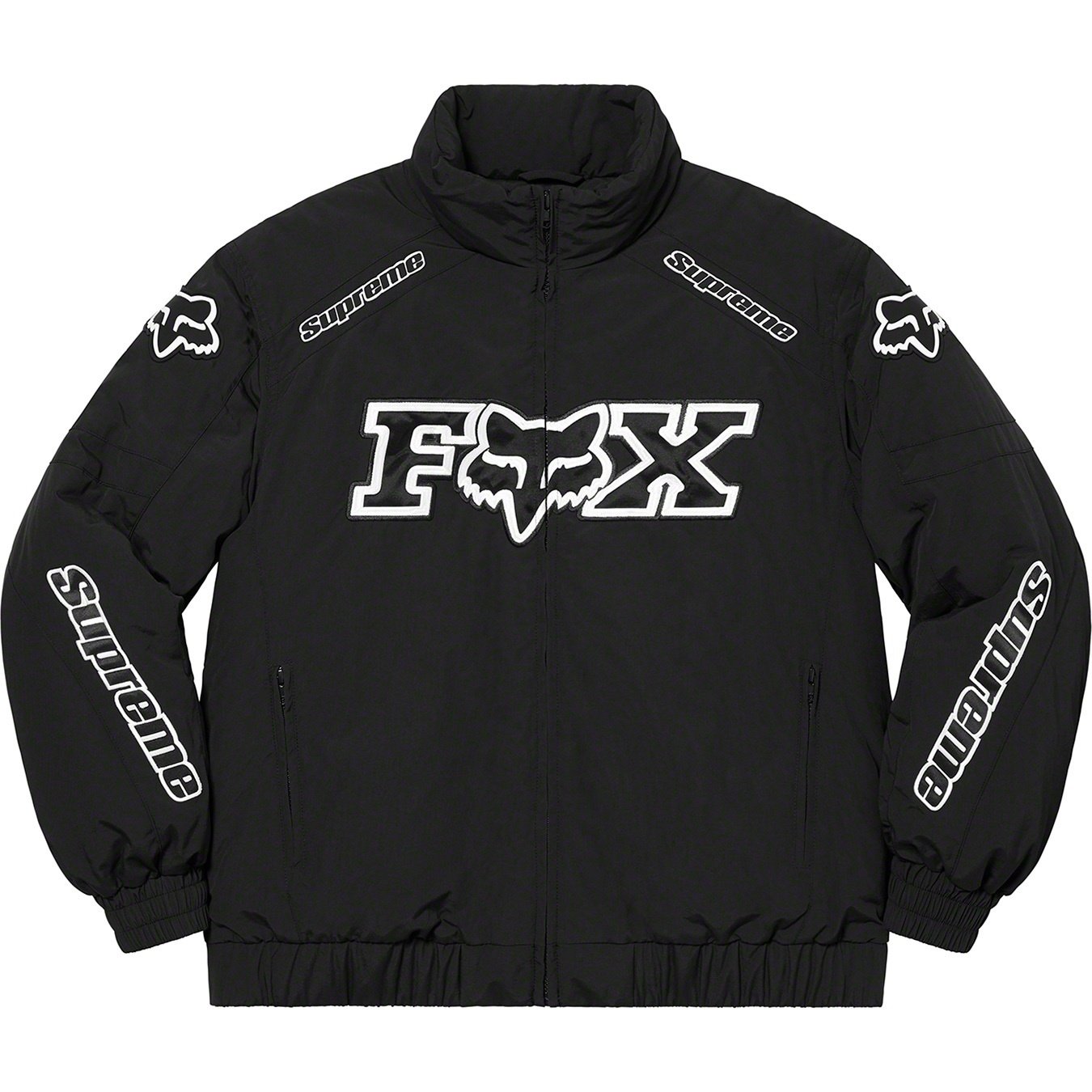 Water resistant Supplex® nylon taslan with fill and taffeta lining. Full zip closure with double welt zip hand pockets at lower front and interior chest pocket. Elastic cuffs and hem. Tackle twill appliqué and embroidered logos on front, sleeves and b...