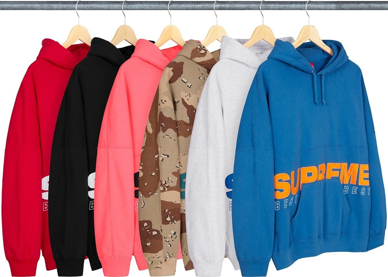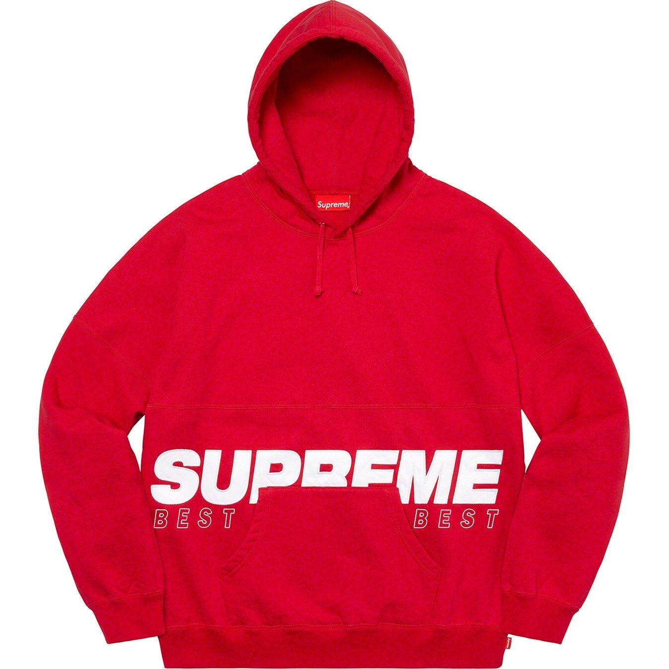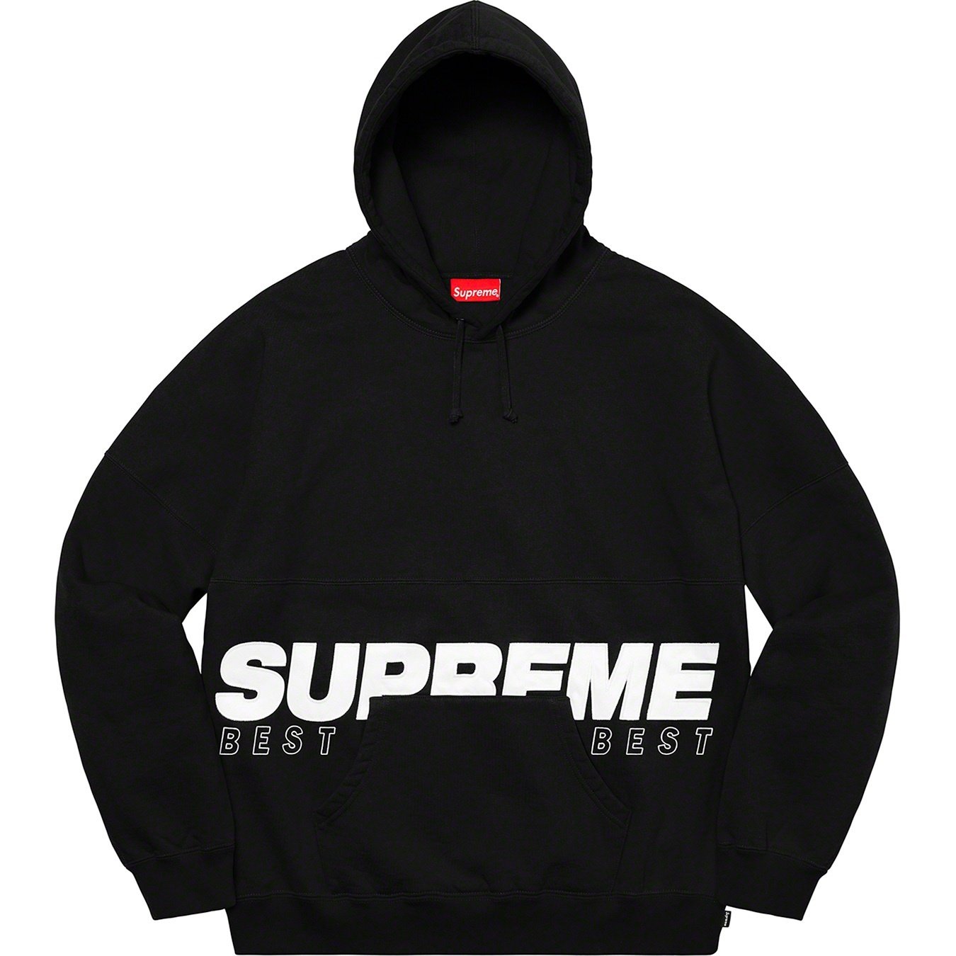 Cotton fleece with pouch pocket. Tackle twill appliqué logo and embroidered graphic at front.