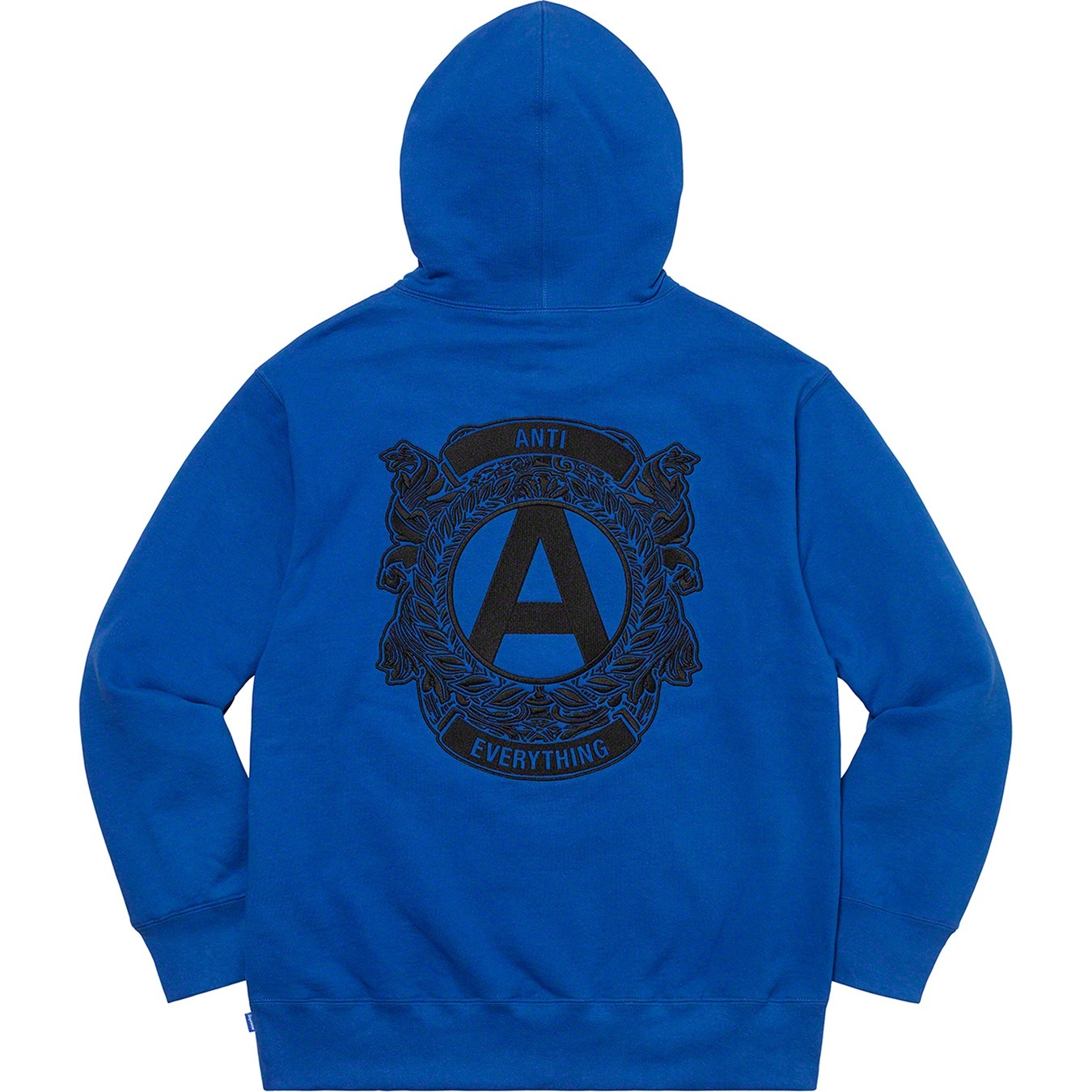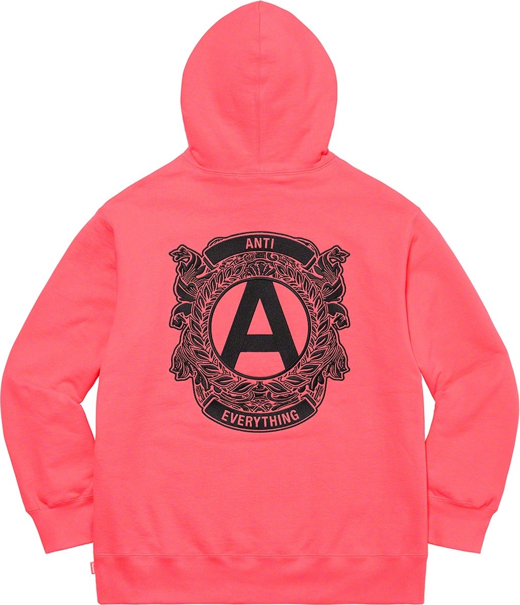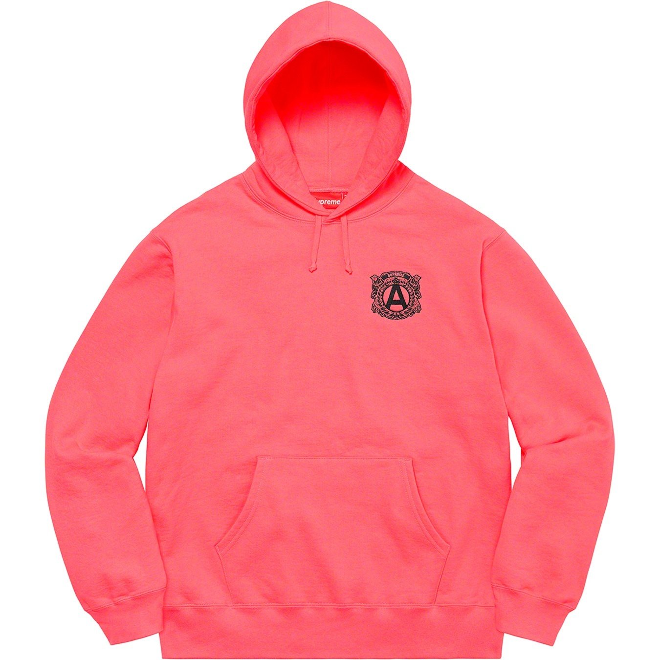 Heavyweight cotton crossgrain fleece with pouch pocket. Embroidered graphics on chest and back.