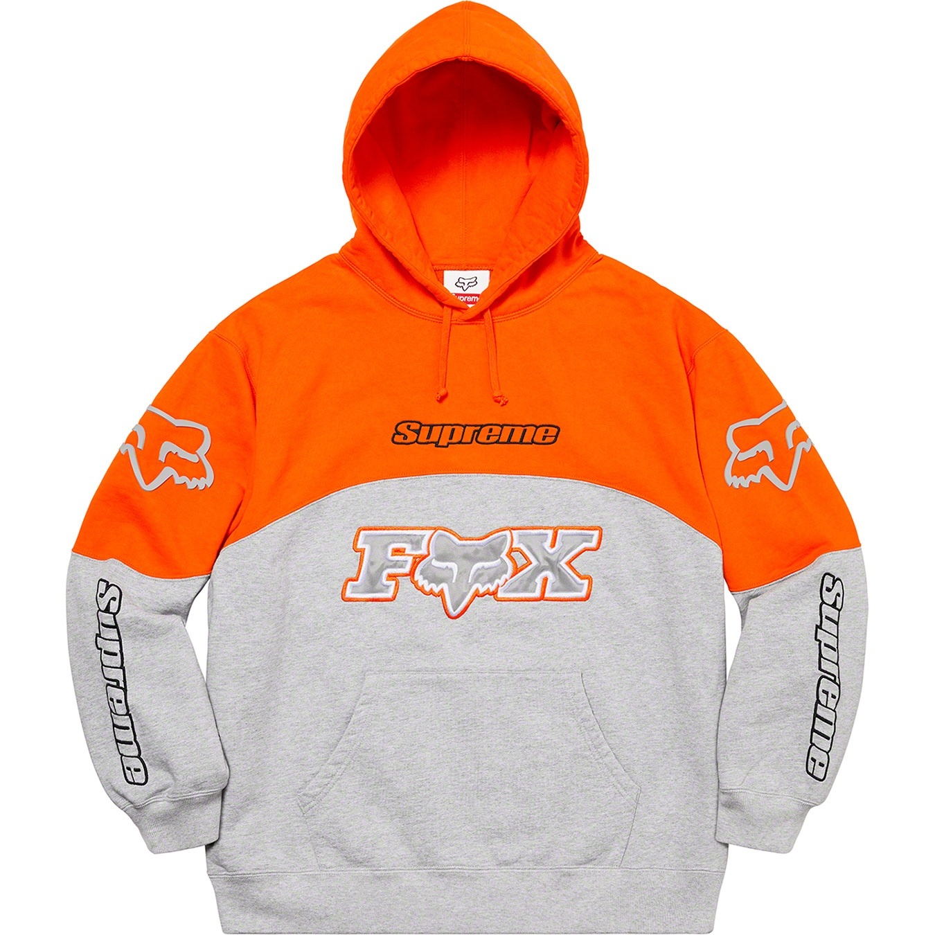 Cotton fleece with pouch pocket. Embroidered logos on chest and sleeves with tackle twill appliqué and embroidered logo at lower front. Raised silicone logo appliqué at shoulders.