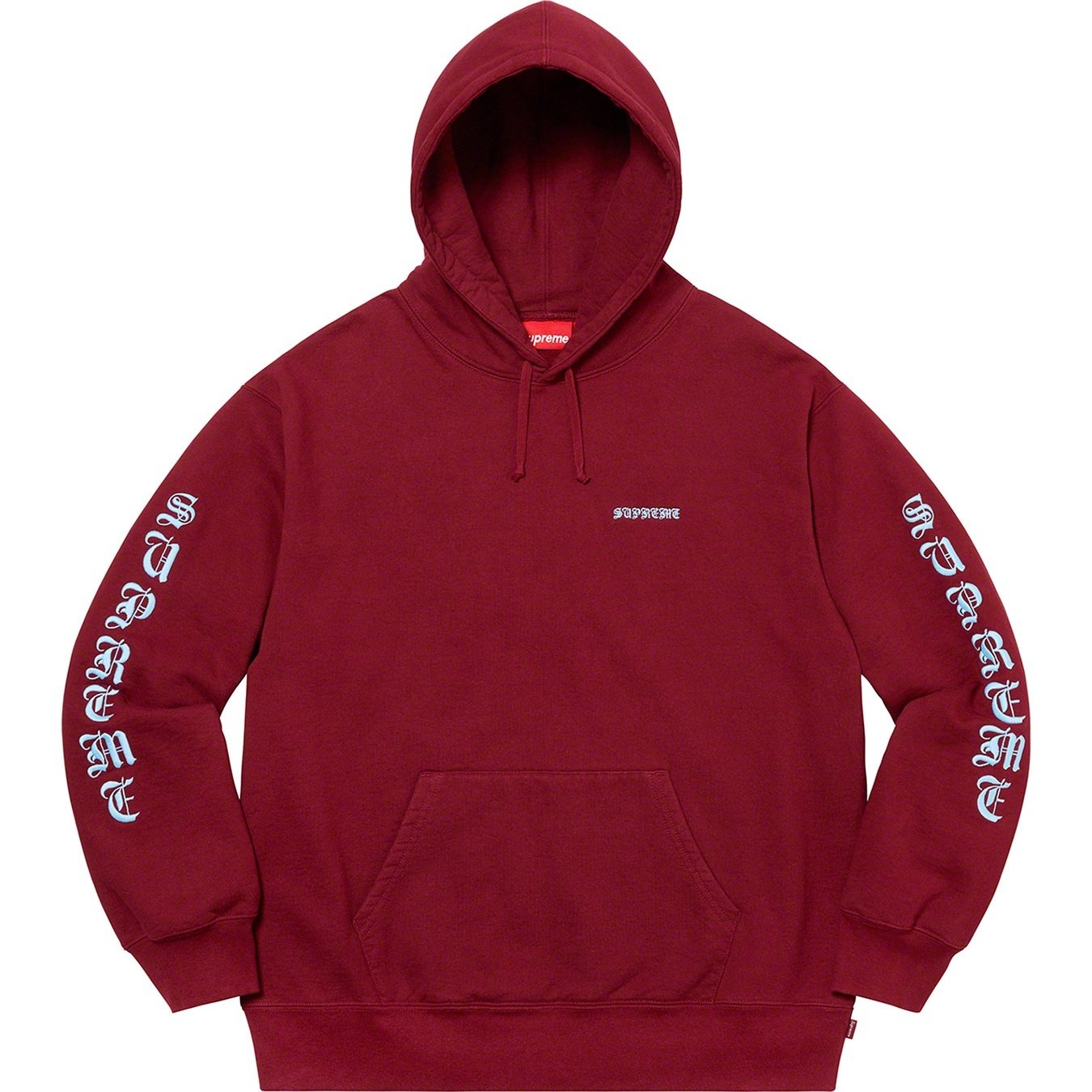Heavyweight cotton crossgrain fleece with pouch pocket. Embroidered logos on chest and sleeves with embroidered graphic on back.