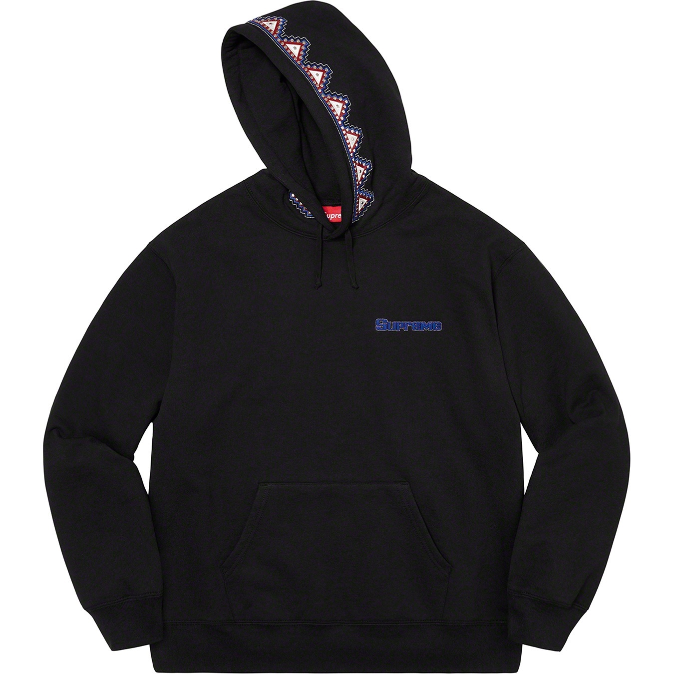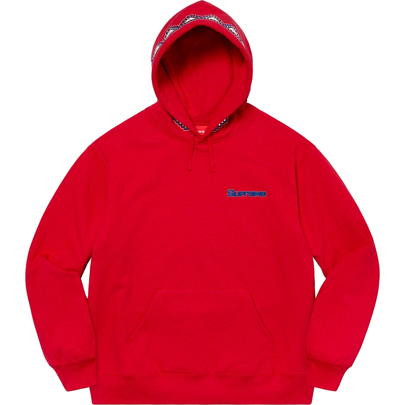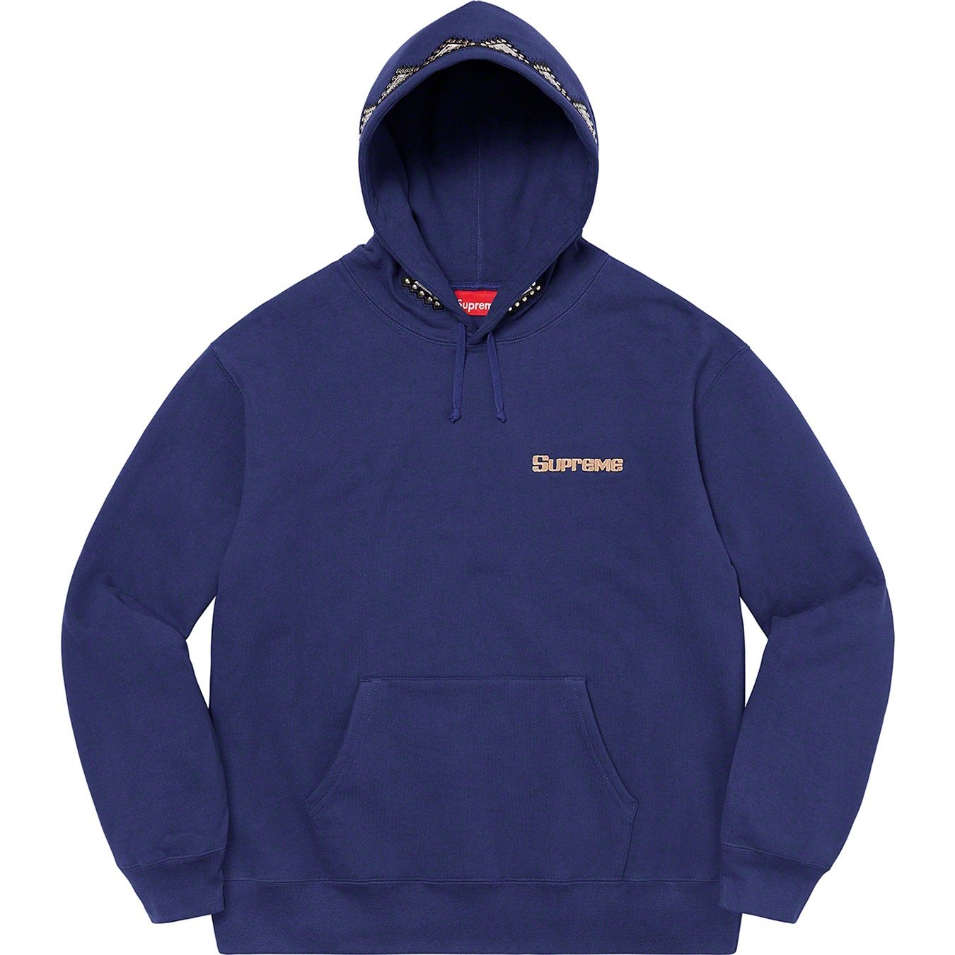 Heavyweight cotton crossgrain fleece with pouch pocket. Vinyl appliqué logo at chest. Vinyl appliqué graphics with studs at hood at back.