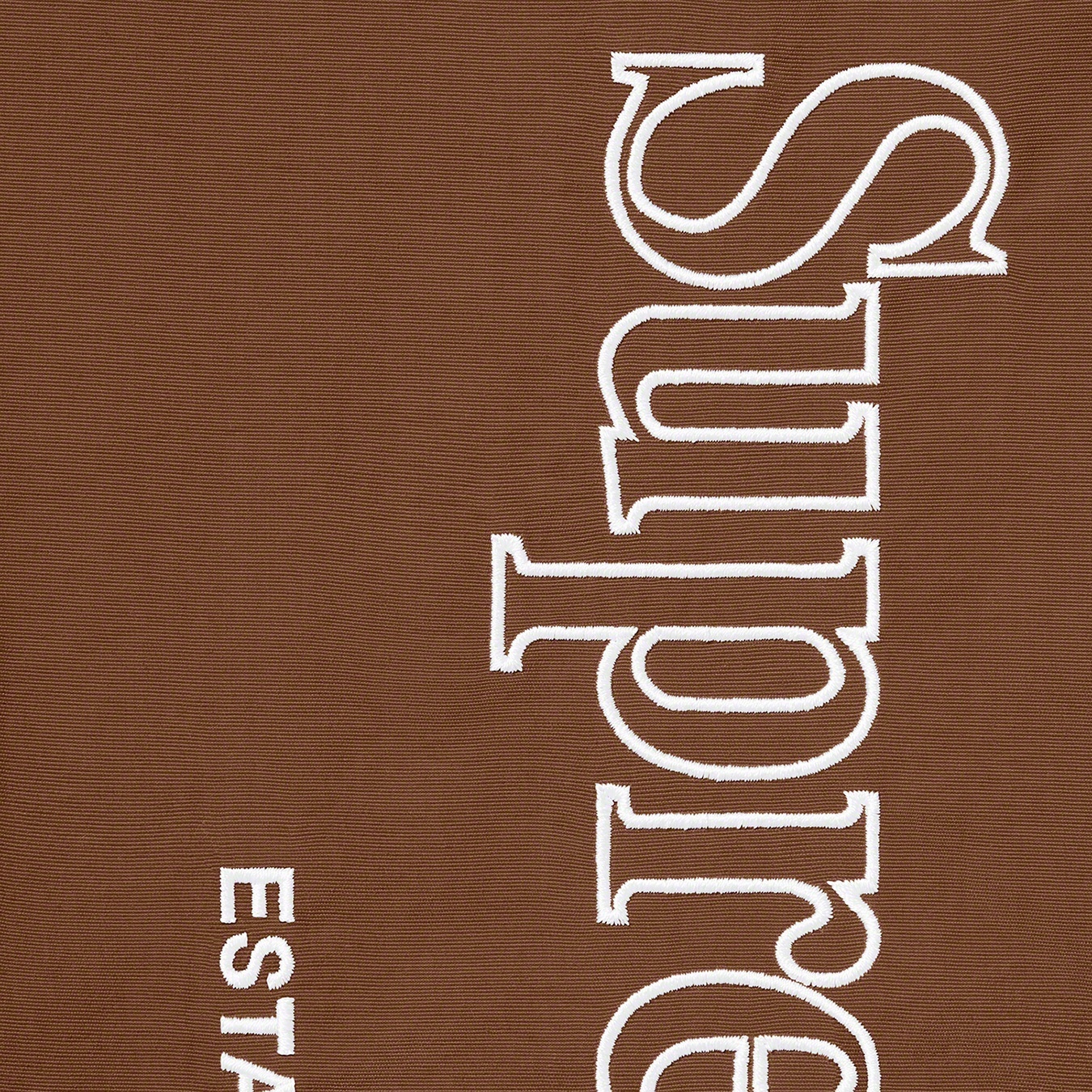 Water resistant Supplex® nylon taslan with cotton jersey and taffeta lining. On seam hand pockets with single back zip pocket. Elastic cuffs and waistband with interior drawcord and interior hanging key pocket. Embroidered logo on left leg.