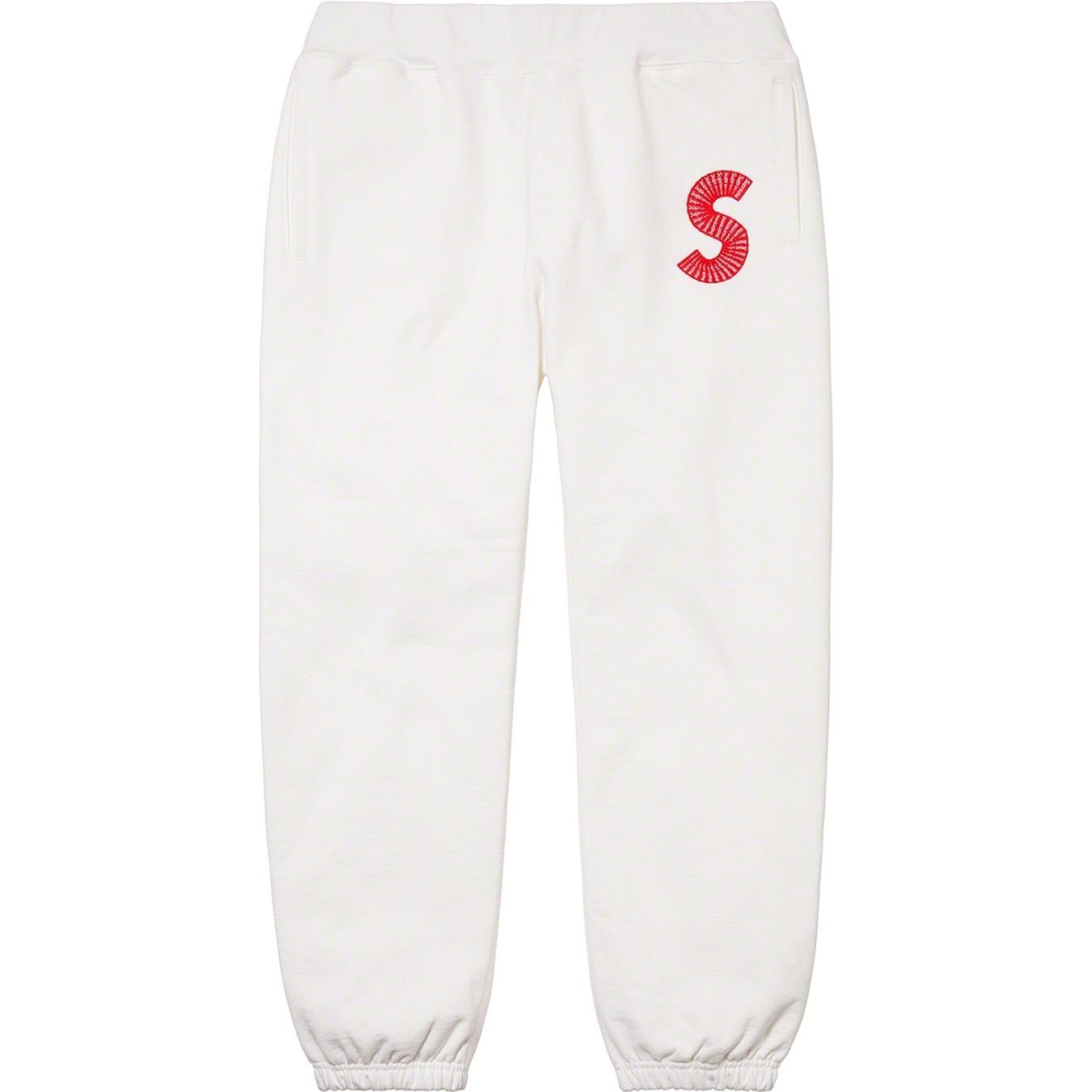 Heavyweight cotton crossgrain fleece with welt hand pockets and single back patch pocket. Elastic cuffs and knit rib waistband with interior drawcord. Embroidered logo on thigh.