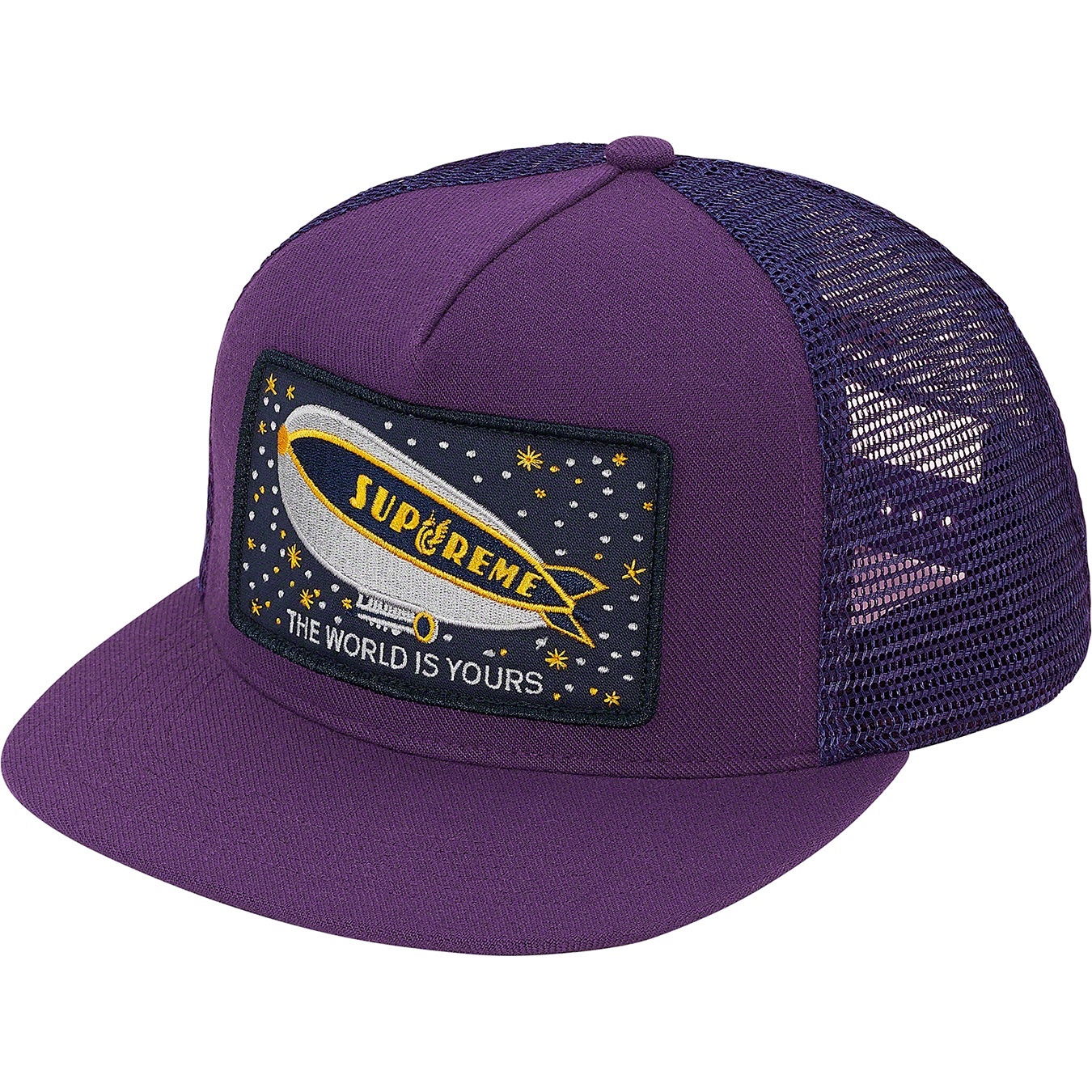 Wool blend 5-Panel hat with mesh back and snap closure. Embroidered patch at front and embroidered logo on back.