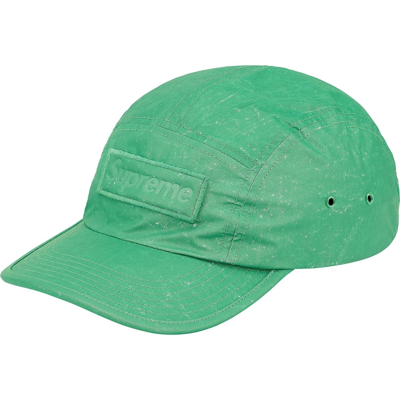 Water resistant reflective Supreme camp cap with distressed print and debossed logo patch. Fabric made in Italy.