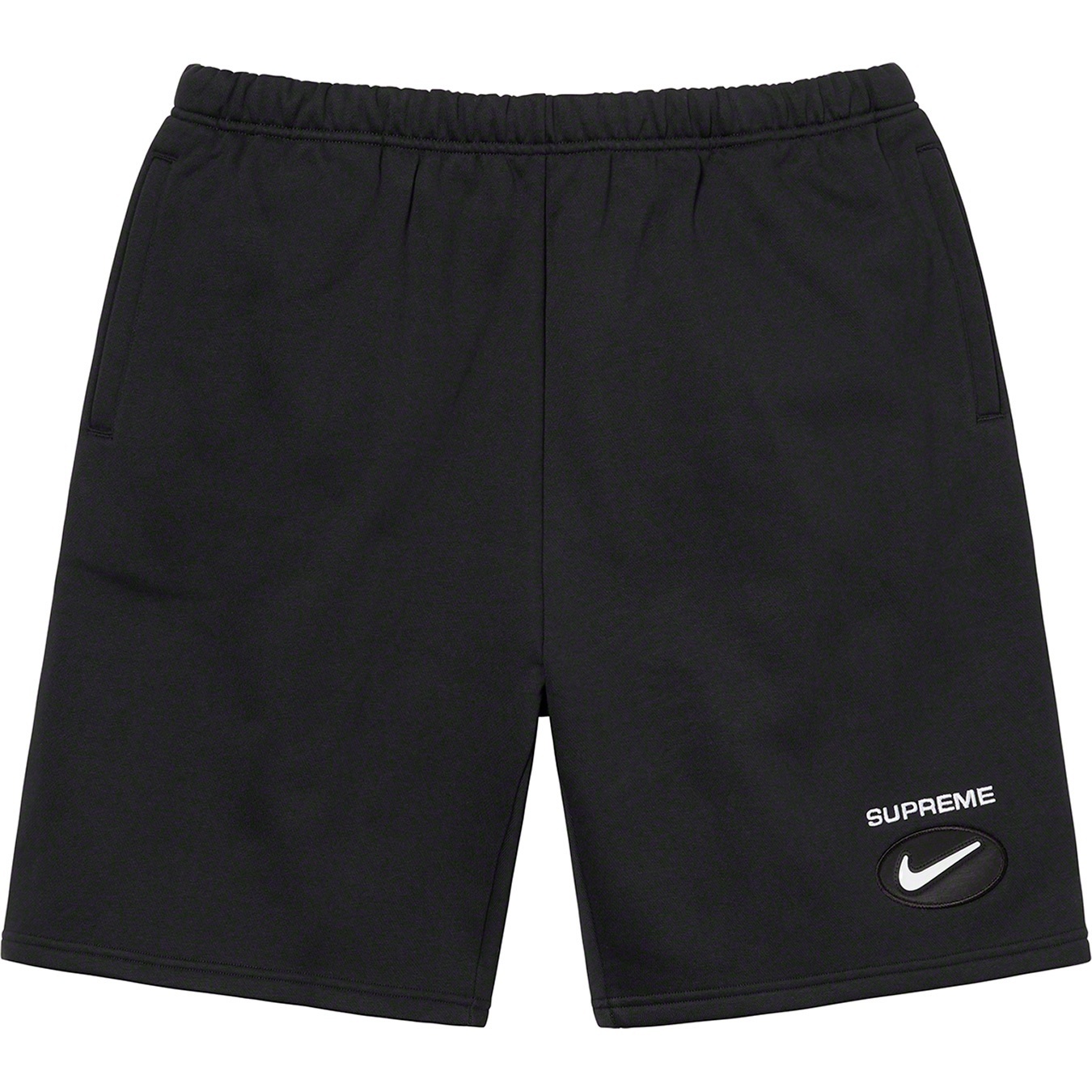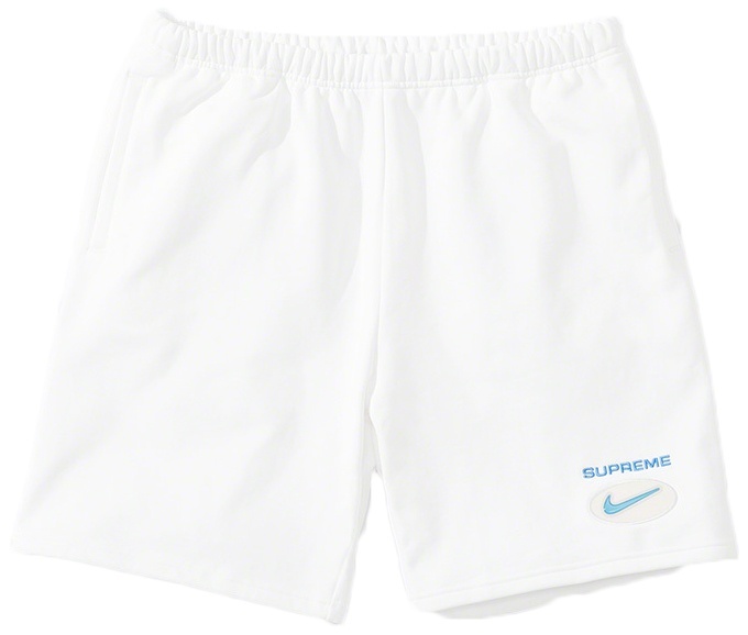 Cotton fleece with welt hand pockets and single back patch pocket. Elastic waistband with interior drawcord. Tackle twill and jewel appliqué logo patch at thigh with embroidered logo. Made exclusively for Supreme.