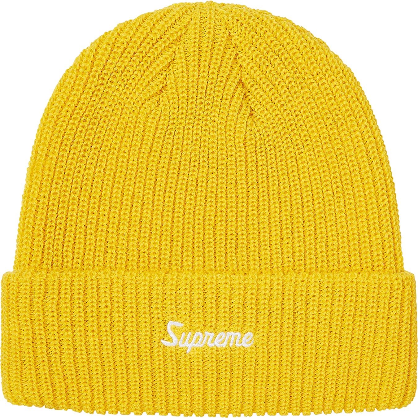 Acrylic loose gauge cuffed beanie with embroidered logo on cuff.