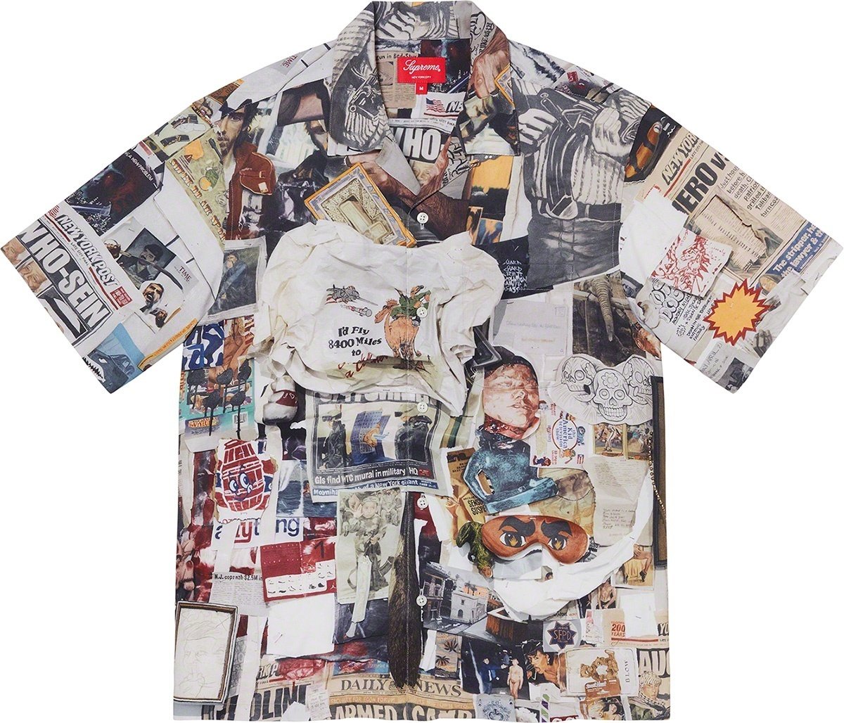 Rayon with printed graphic and single chest pocket. Original artwork by Dan Colen.