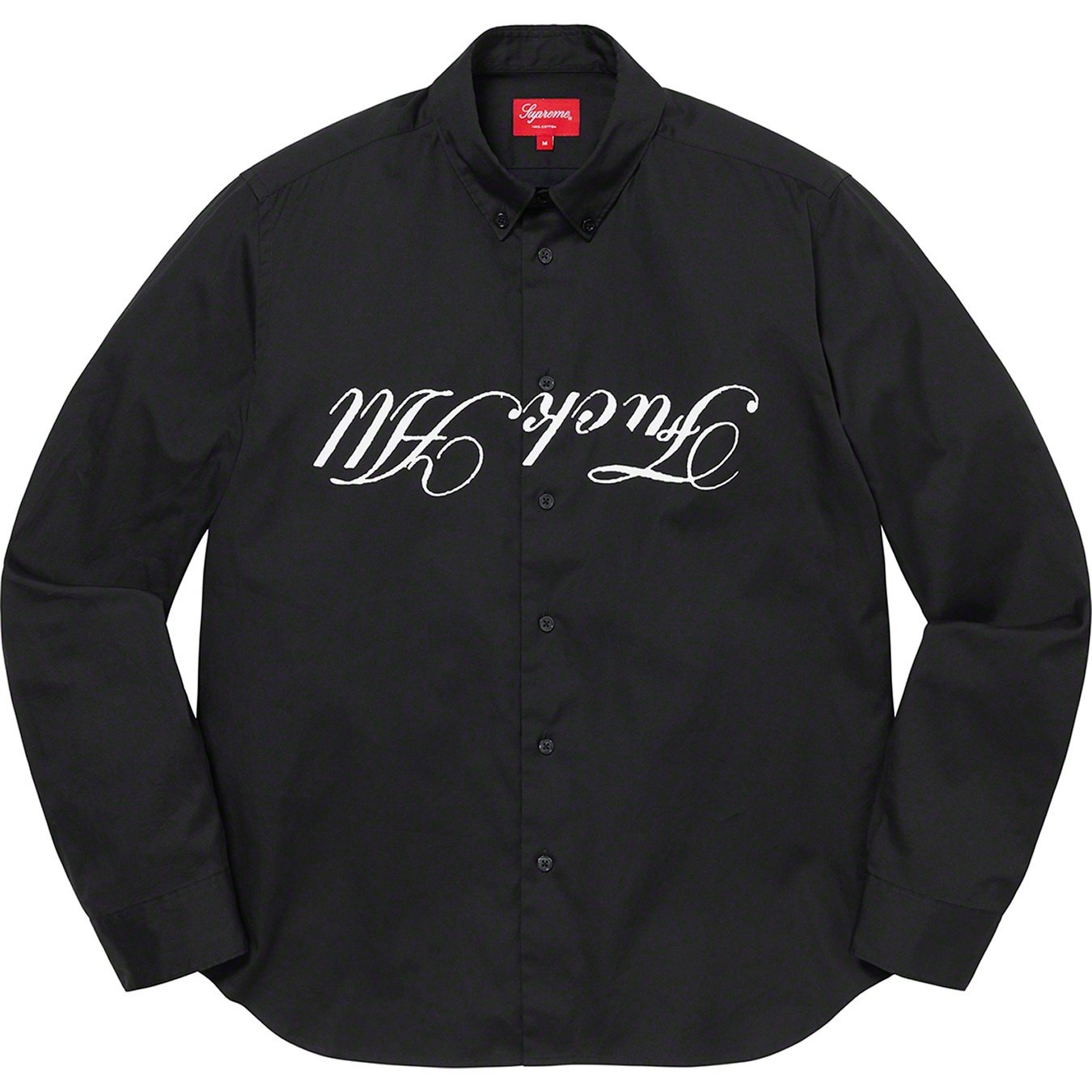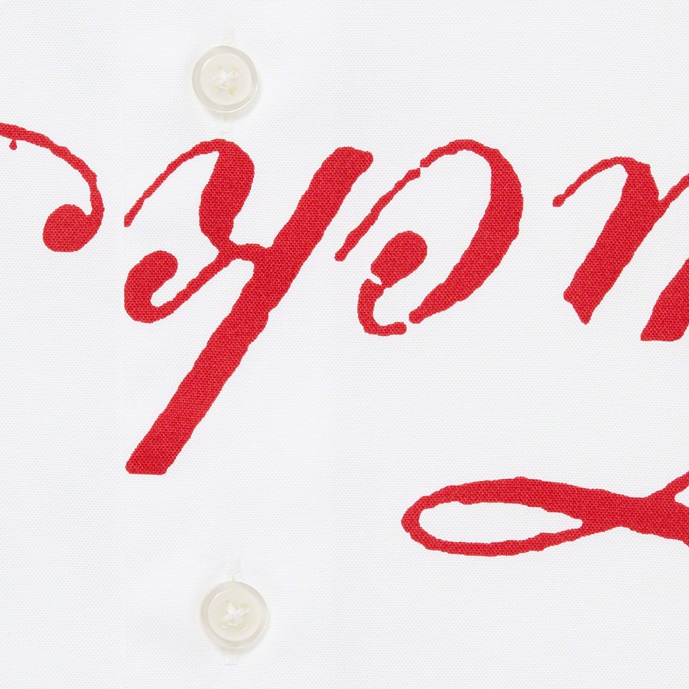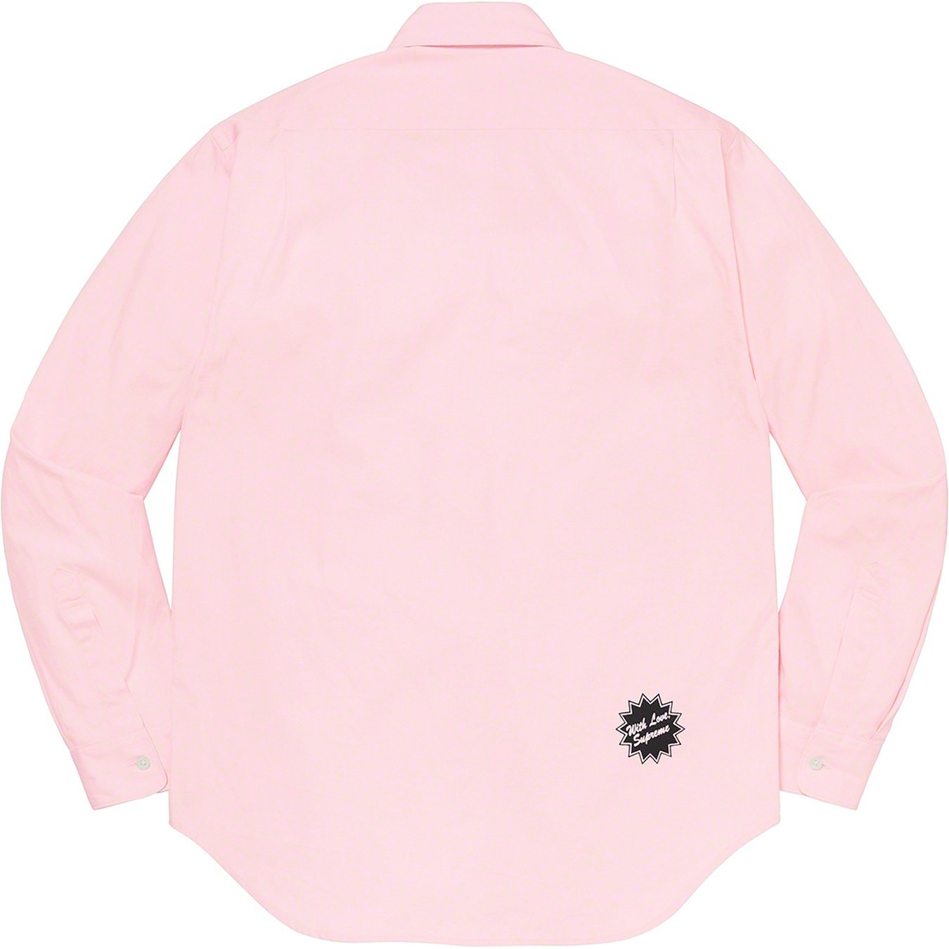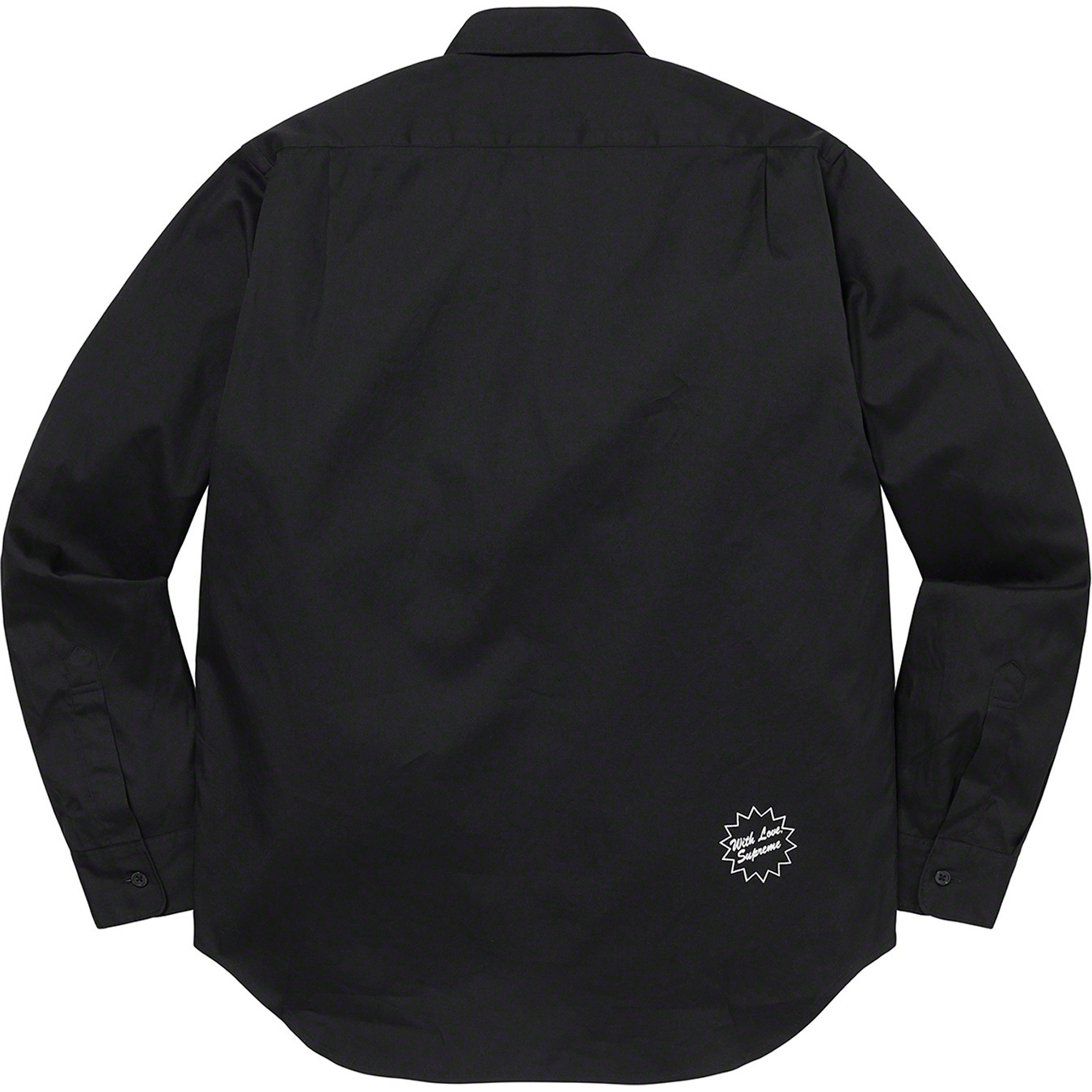 All cotton poplin with button down collar. Printed graphics on chest and back. Original artwork by Jamie Reid.
