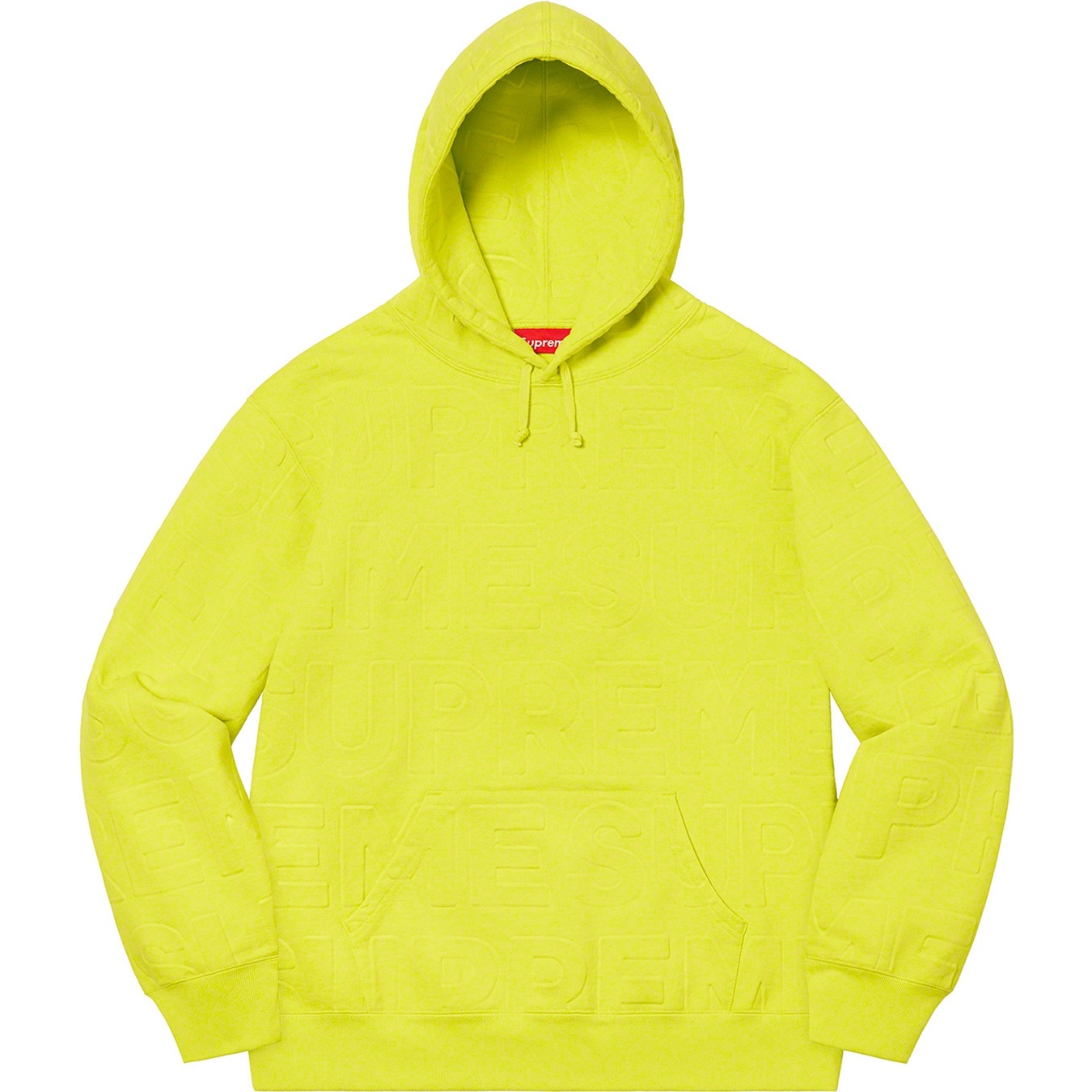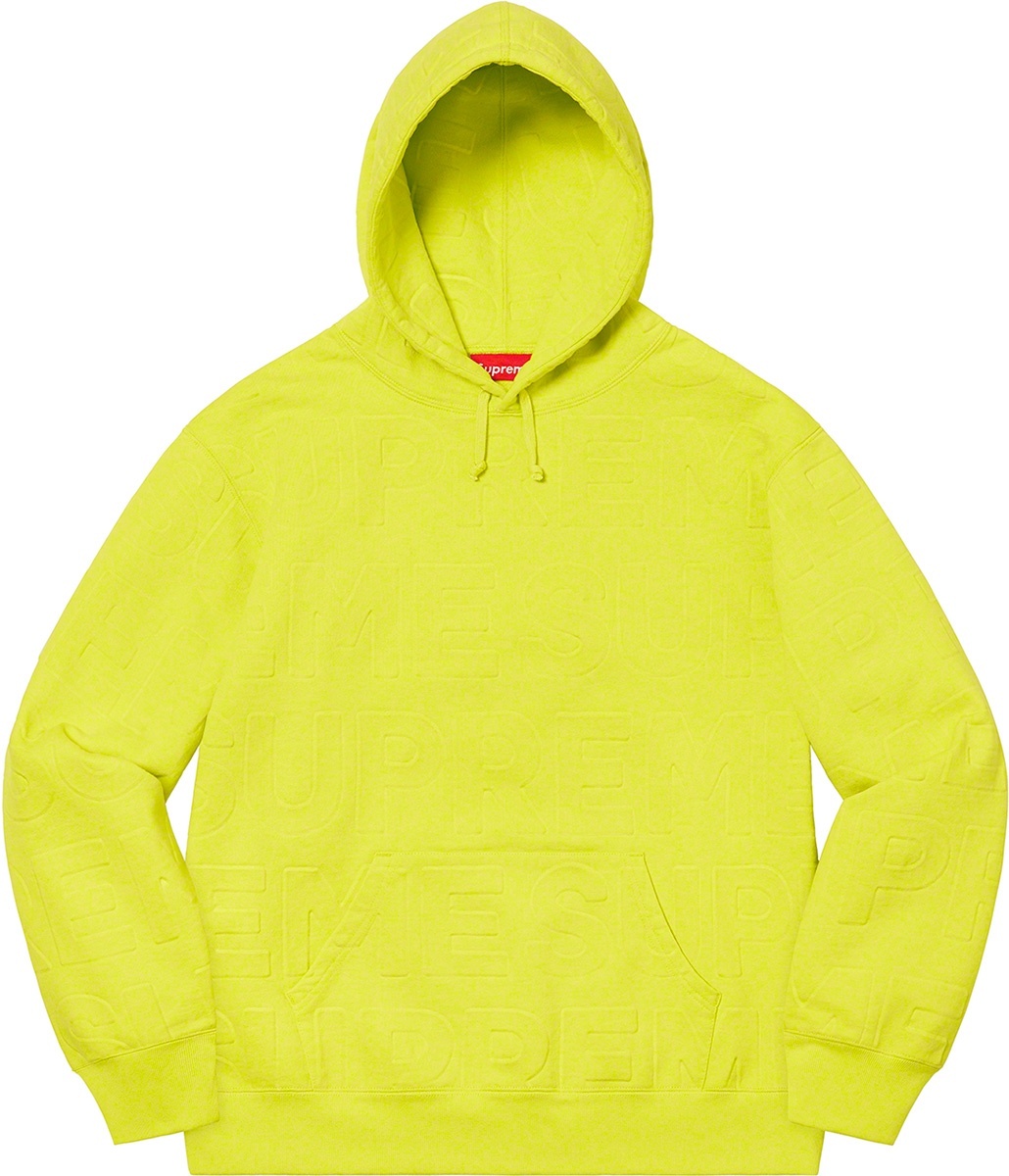 Cotton fleece with pouch pocket and embossed logo pattern.