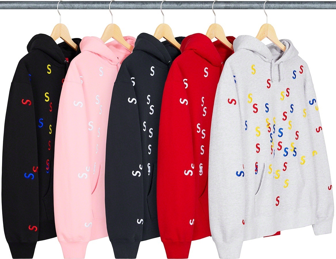 Cotton fleece with pouch pocket and embroidered logo pattern. Embroidered logo on hood.