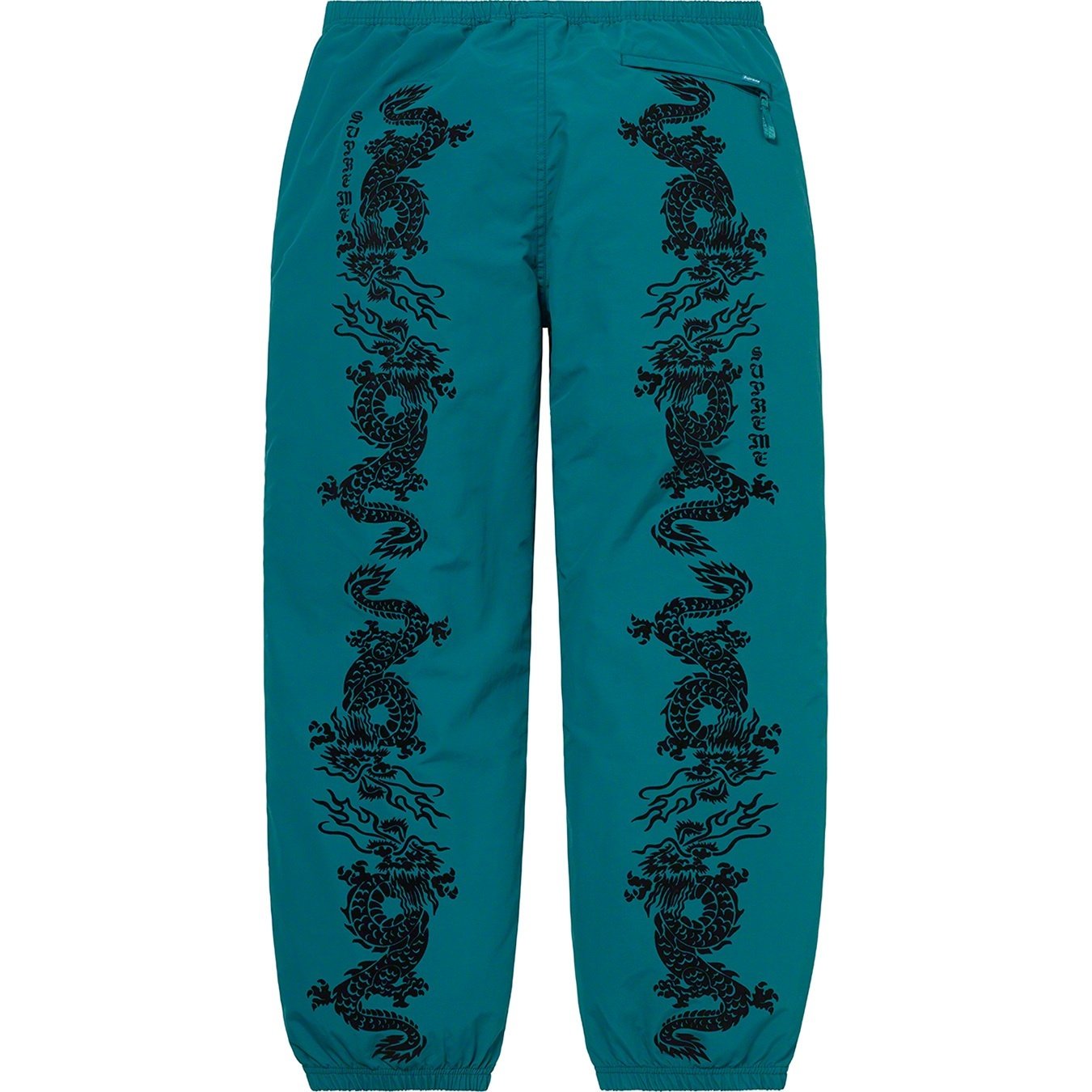 Water resistant Supplex® nylon taslan with mesh and taffeta lining. On seam hand pockets and back zip pocket. Elastic waistband with interior drawcord and interior hanging key pocket. Flocking printed graphic on front and back.