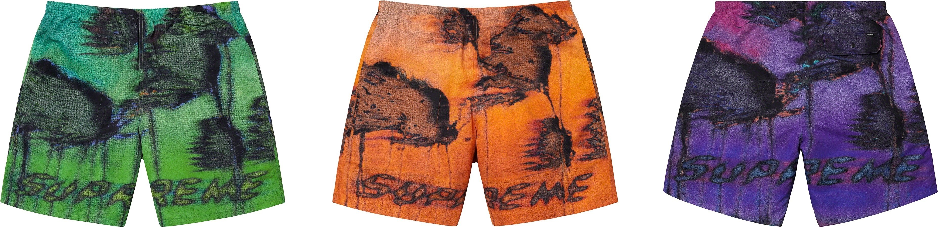 Supplex® nylon taslan with mesh lining. On seam hand pockets and snap flap back pocket. Elastic waistband with interior drawcord and interior hanging key pocket. Printed logo at lower legs.