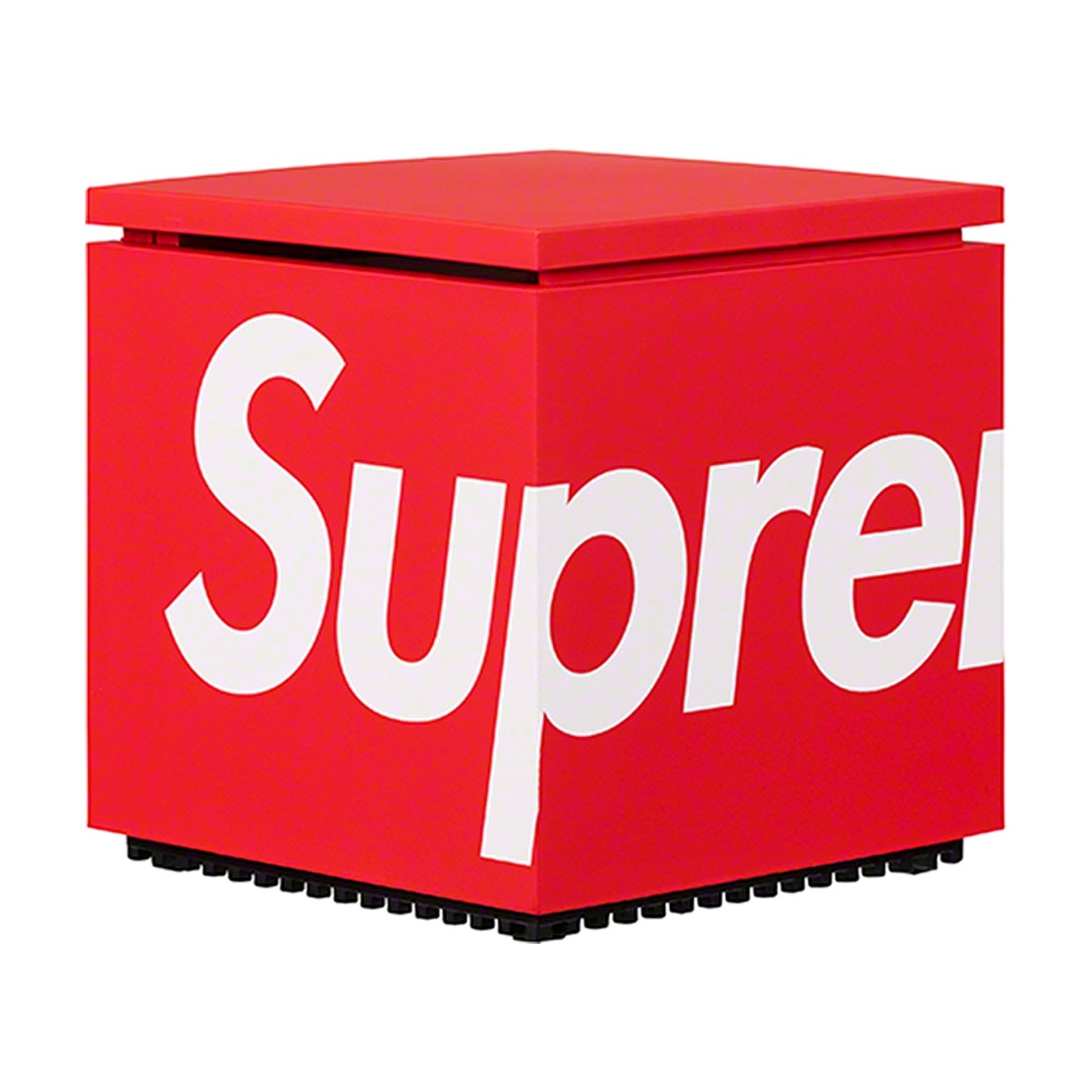 Technopolymer table lamp with printed logo. 3.9" x 3.9" x 4.3". Made exclusively for Supreme.