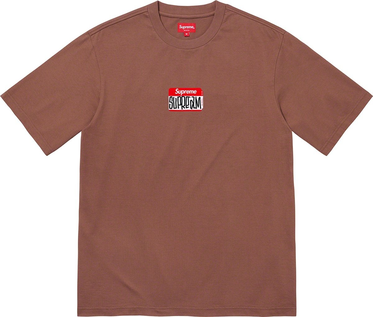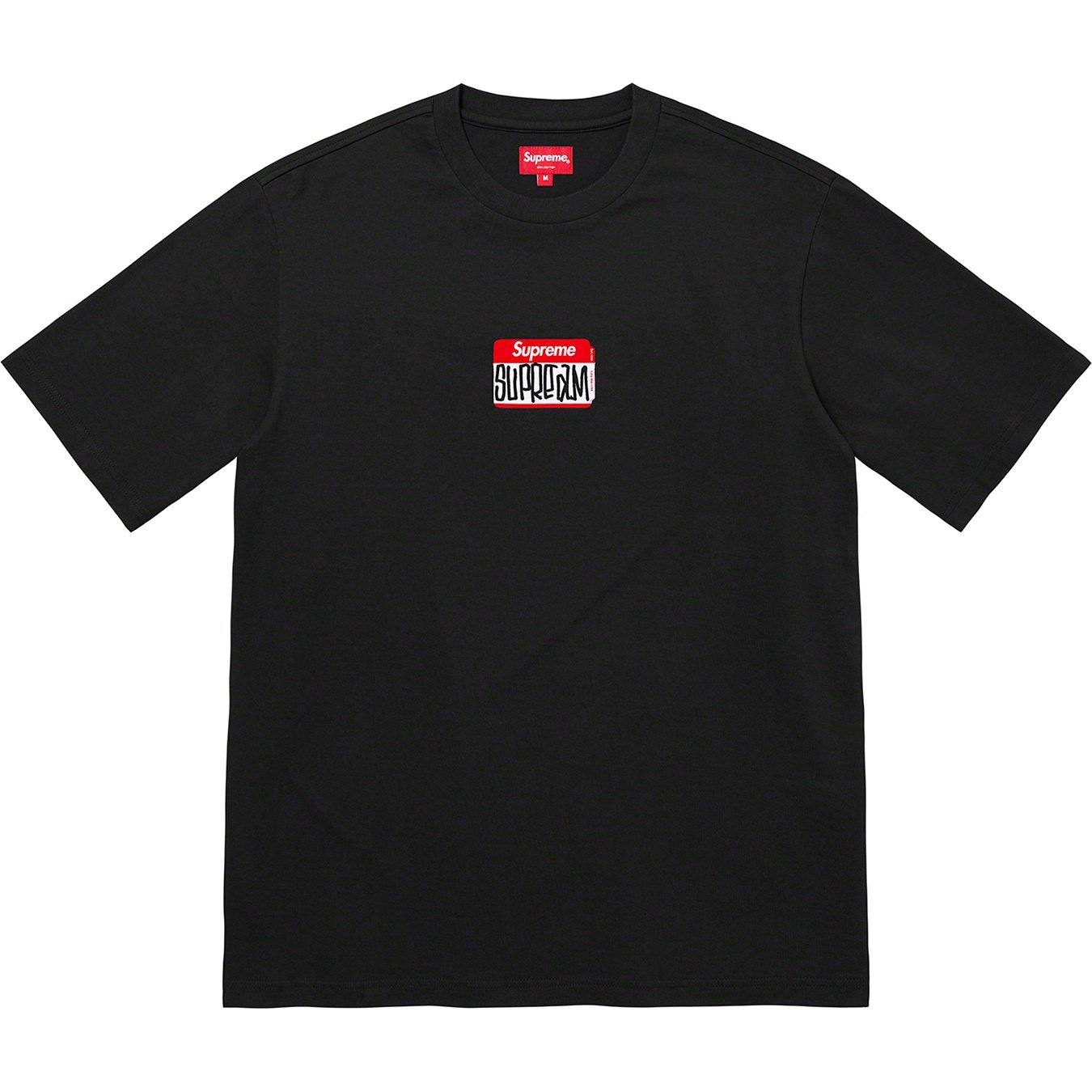 All cotton jersey crewneck with woven logo label at chest. Original artwork by Mark Gonzales.