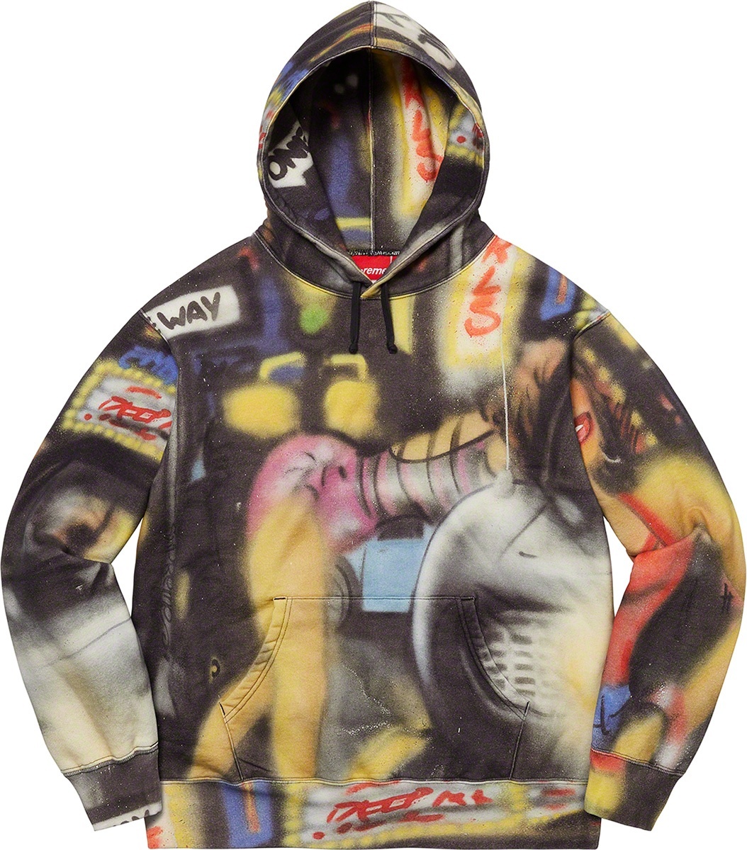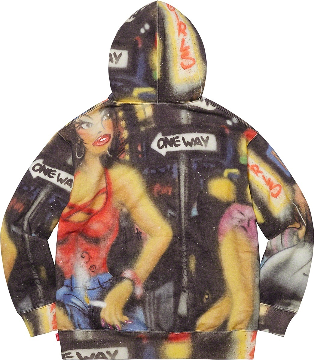 Cotton fleece with pouch pocket and printed graphic. Original artwork