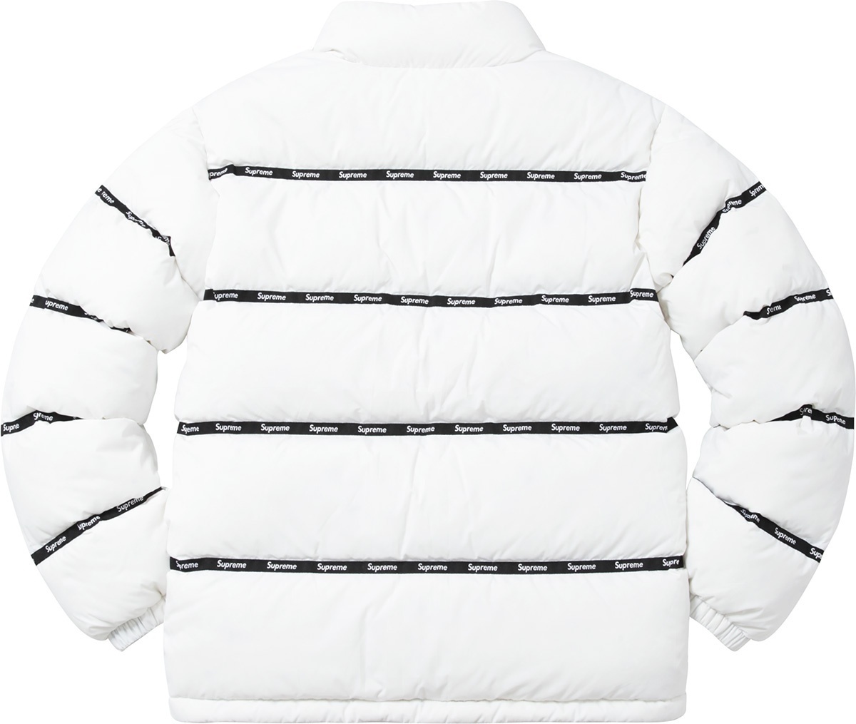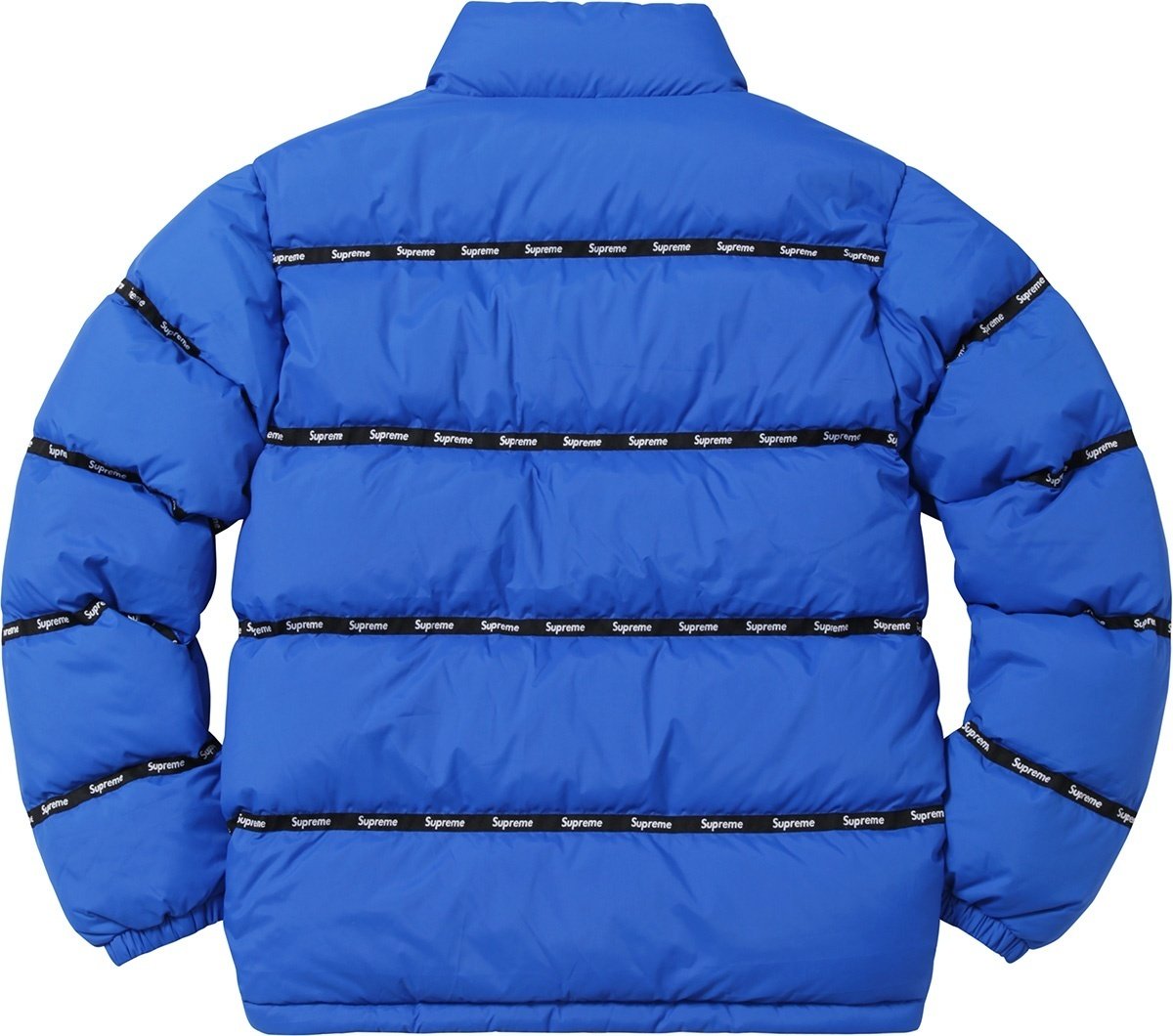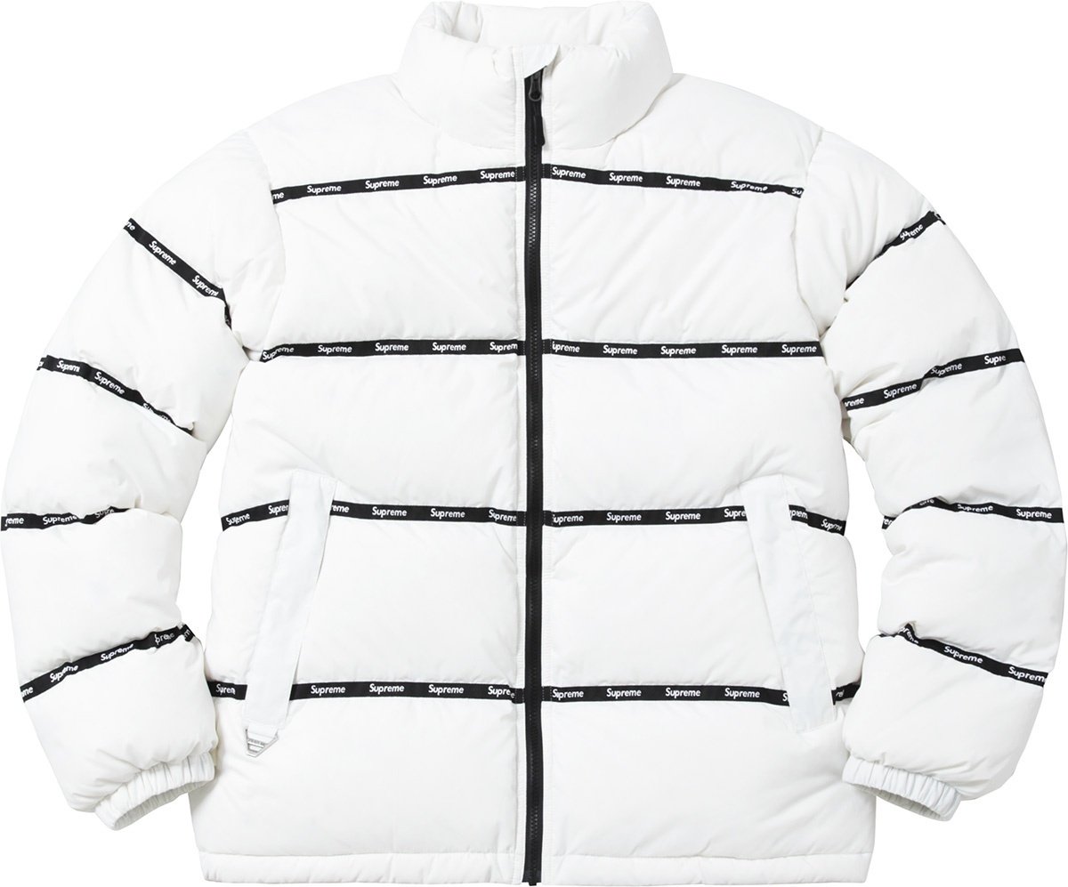 Water resistant poly with quilted down fill and elastic drawcord at hem. Woven logo tape at quilt lines.