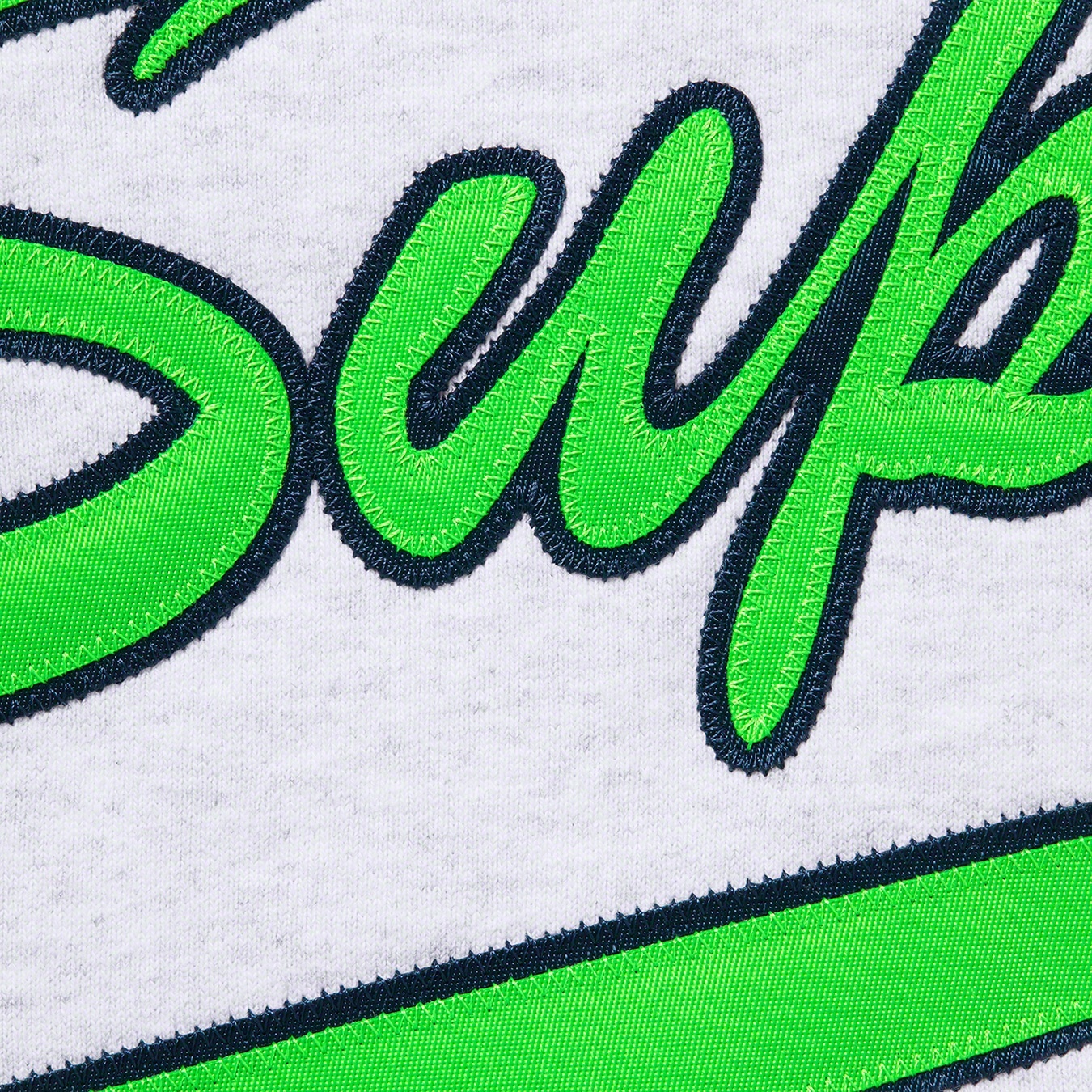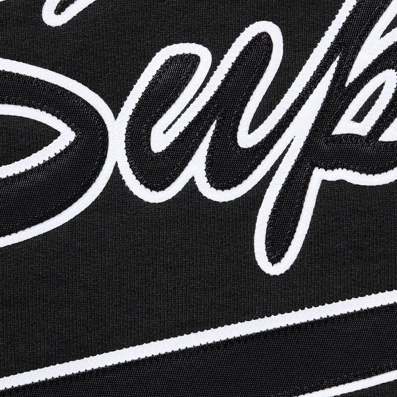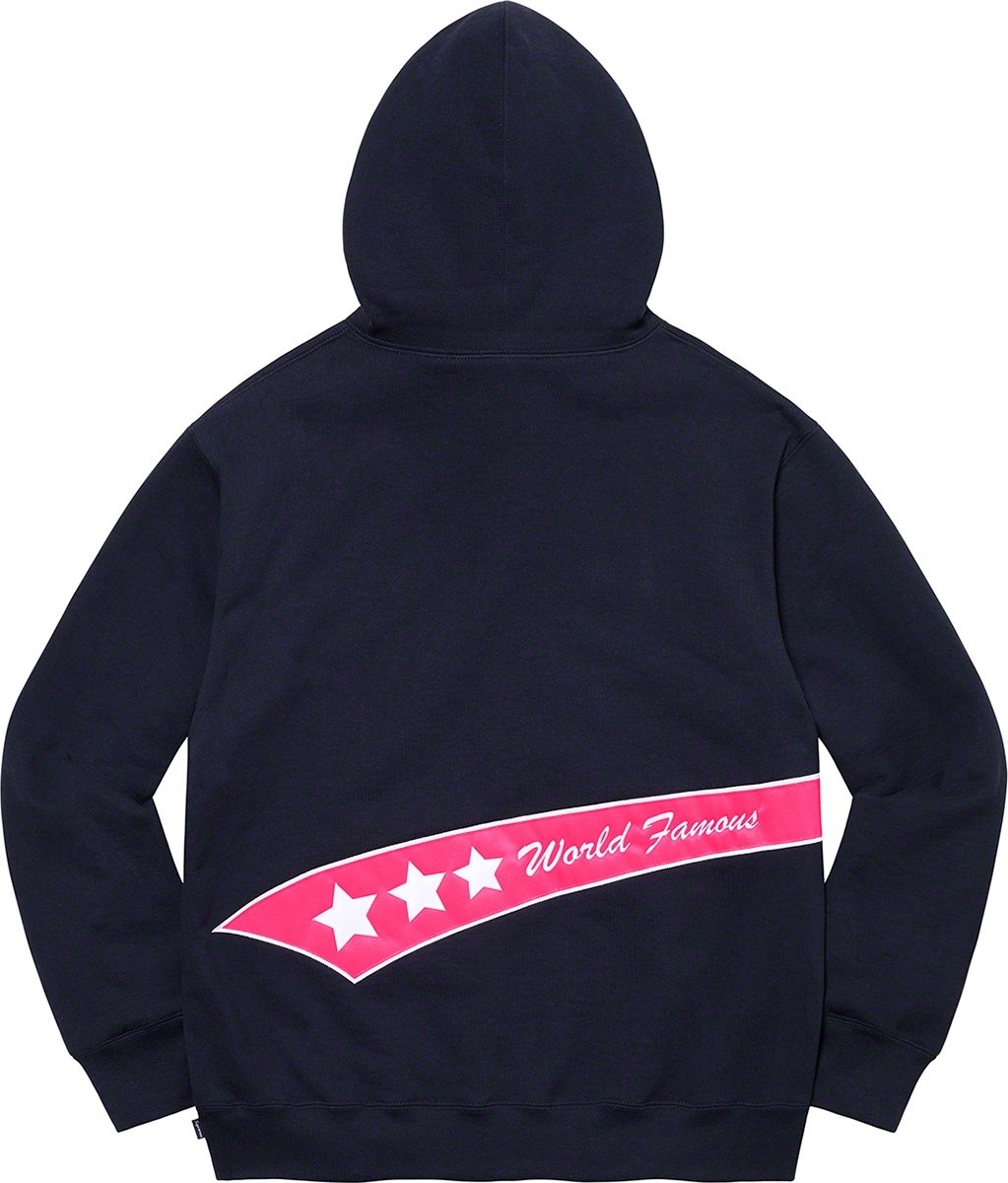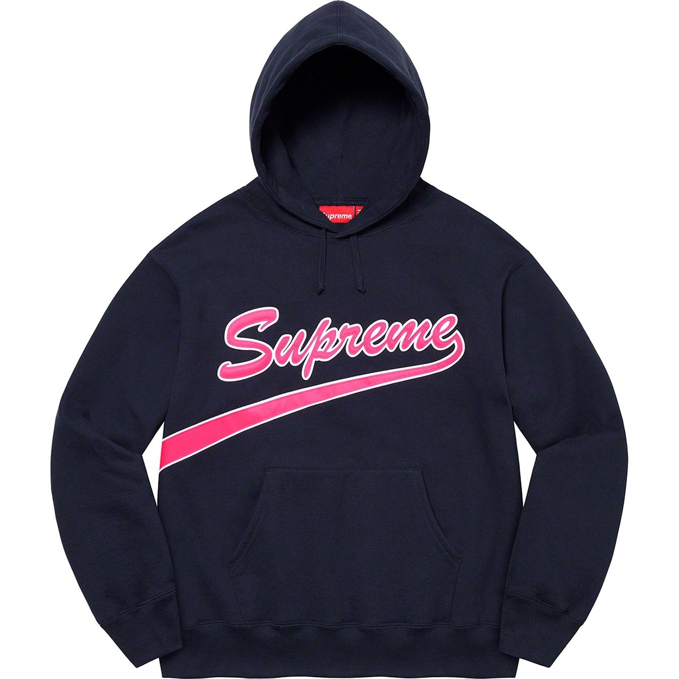 Heavyweight cotton crossgrain fleece with pouch pocket. Tackle twill logo appliqué at chest and back.