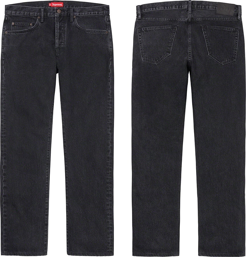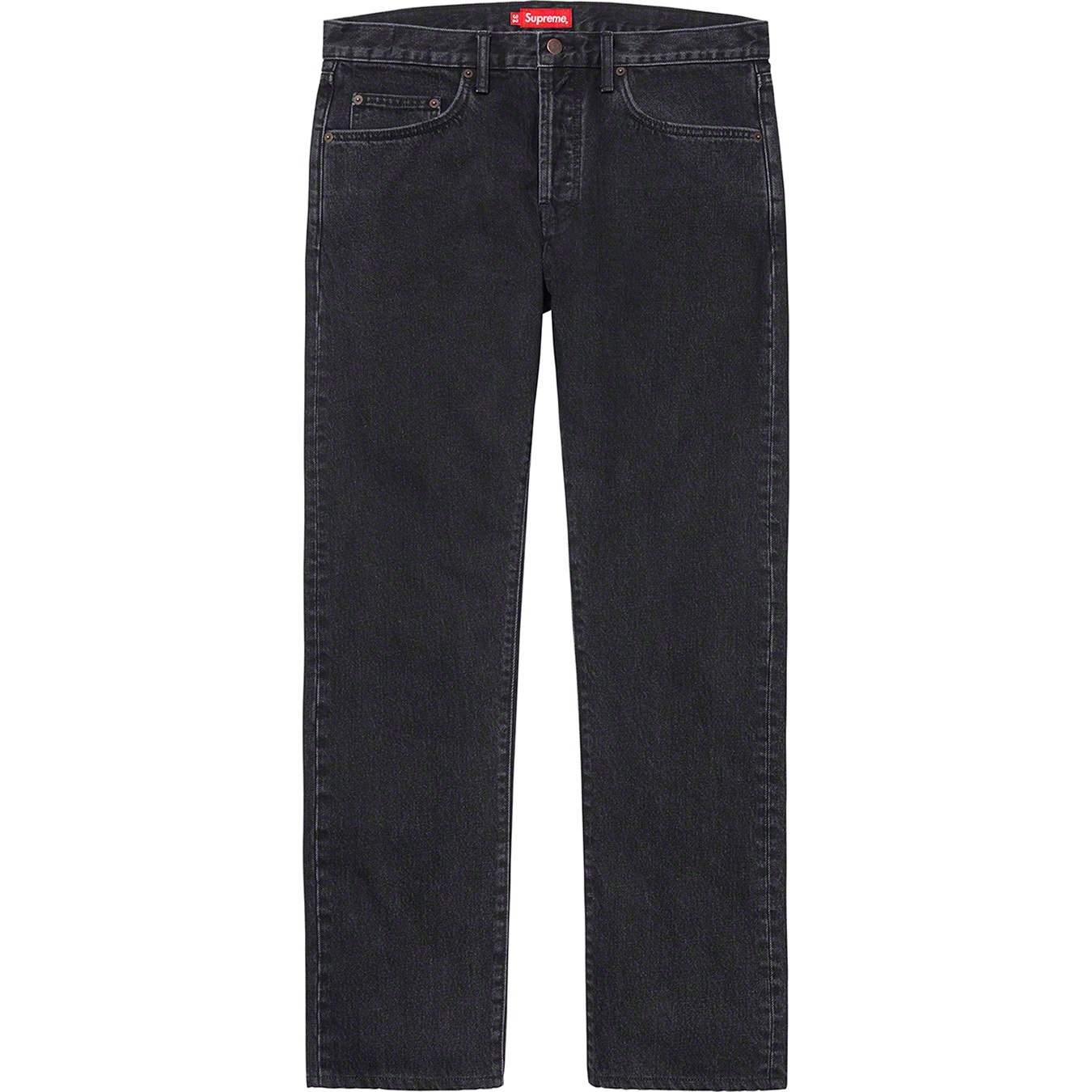 All cotton 14 oz. denim with stone wash. Classic 5-pocket style with button fly, single coin pocket, copper oxide rivets and leather logo patch on back.