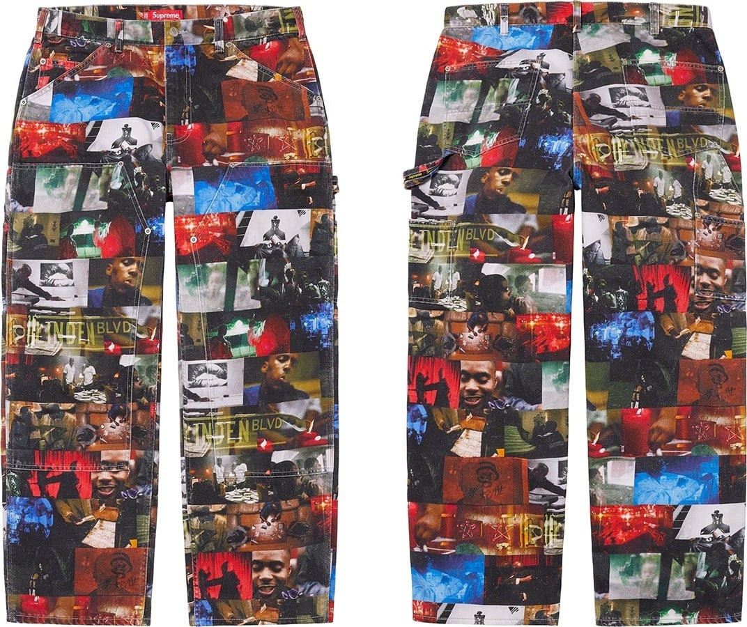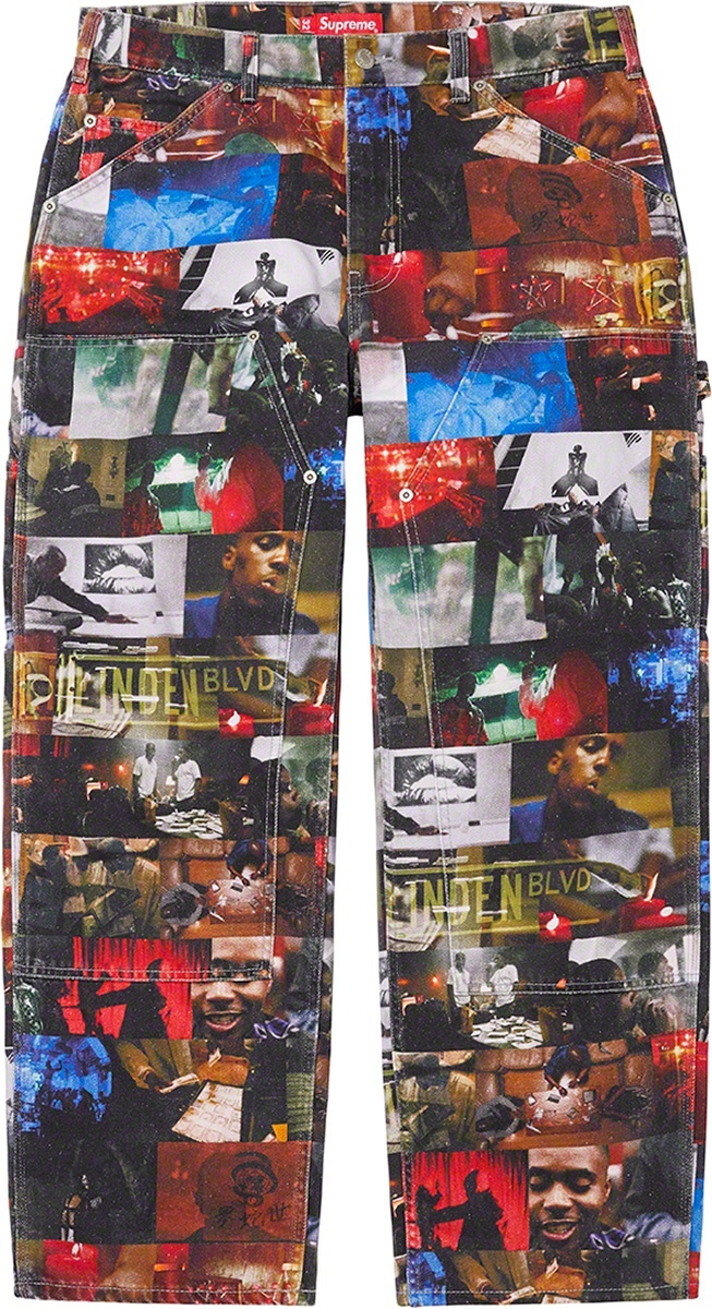 All cotton 13 oz. denim with printed pattern. Utility style with zip fly, double knee, single coin pocket and utility pockets. Hammer loop at left leg with woven logo taping.