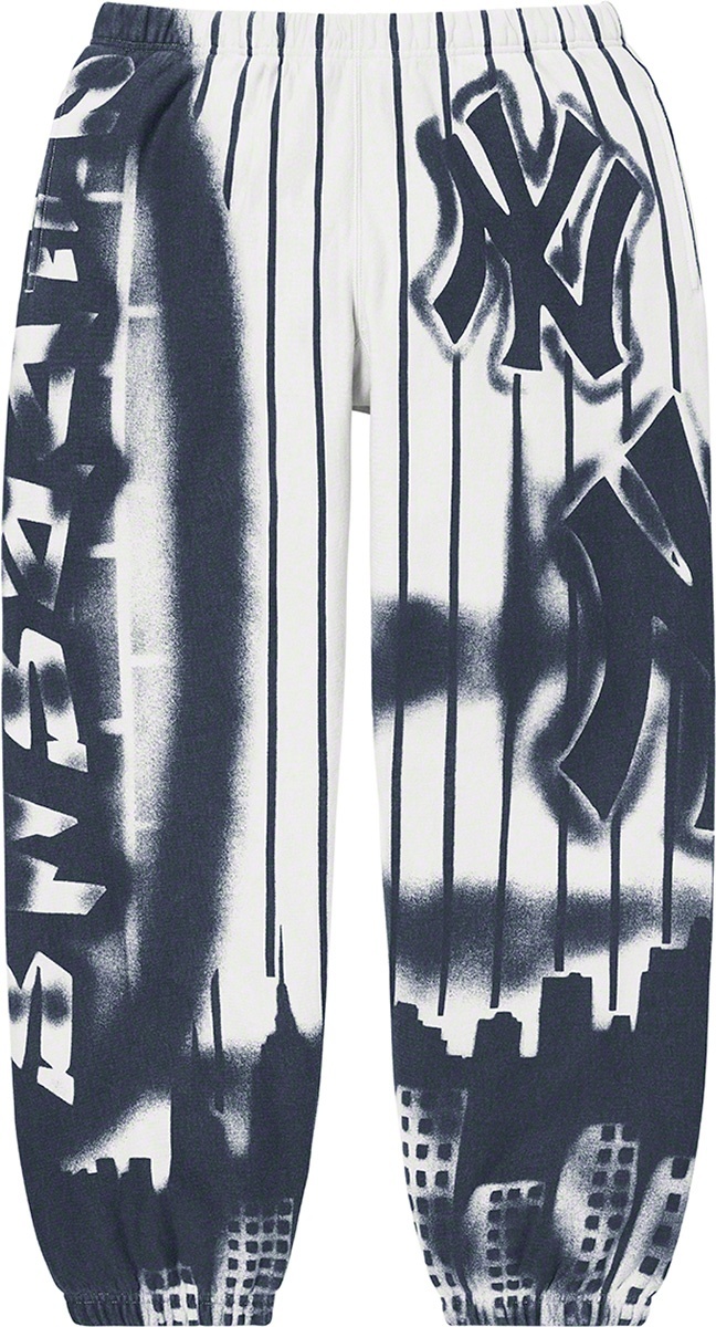 Cotton fleece with printed graphic. On seam hand pockets and single back patch pocket. Elastic cuffs and waistband with interior drawcord. Printed logo on side. Official Yankees™ merchandise made exclusively for Supreme.