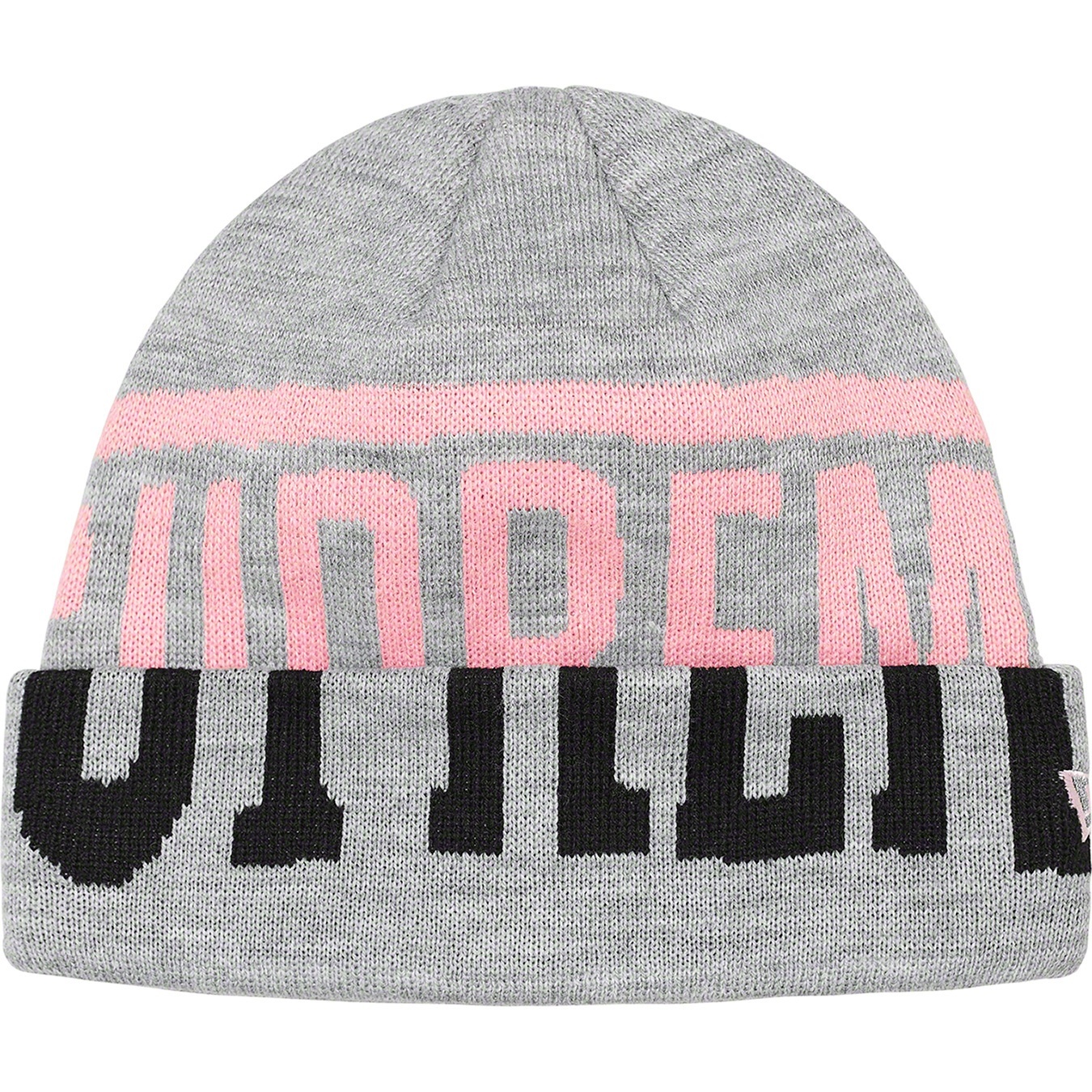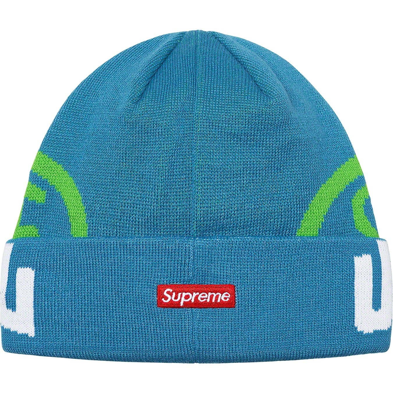 Acrylic cuffed beanie with jacquard knit logo at cuff and crown. Embroideries at cuff.