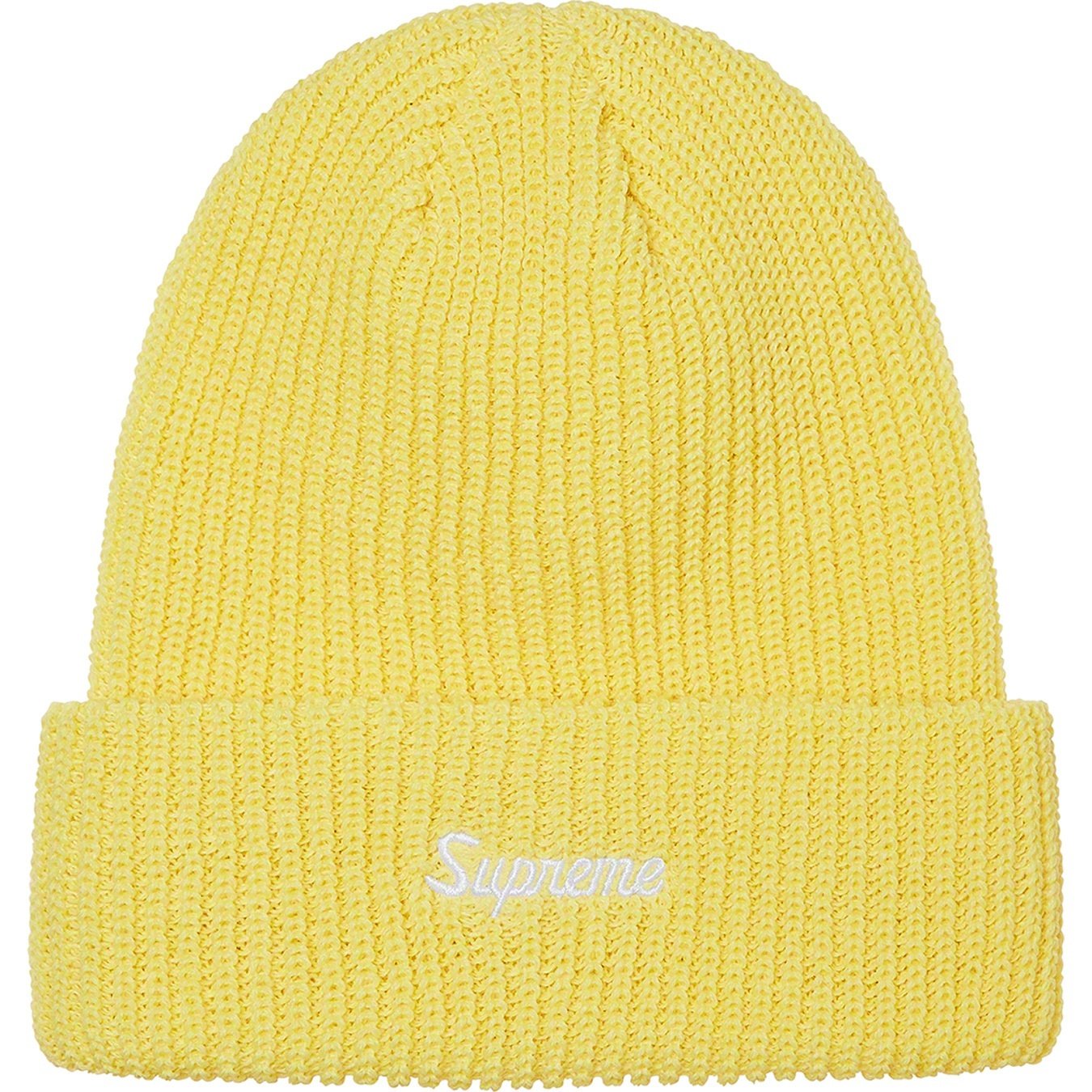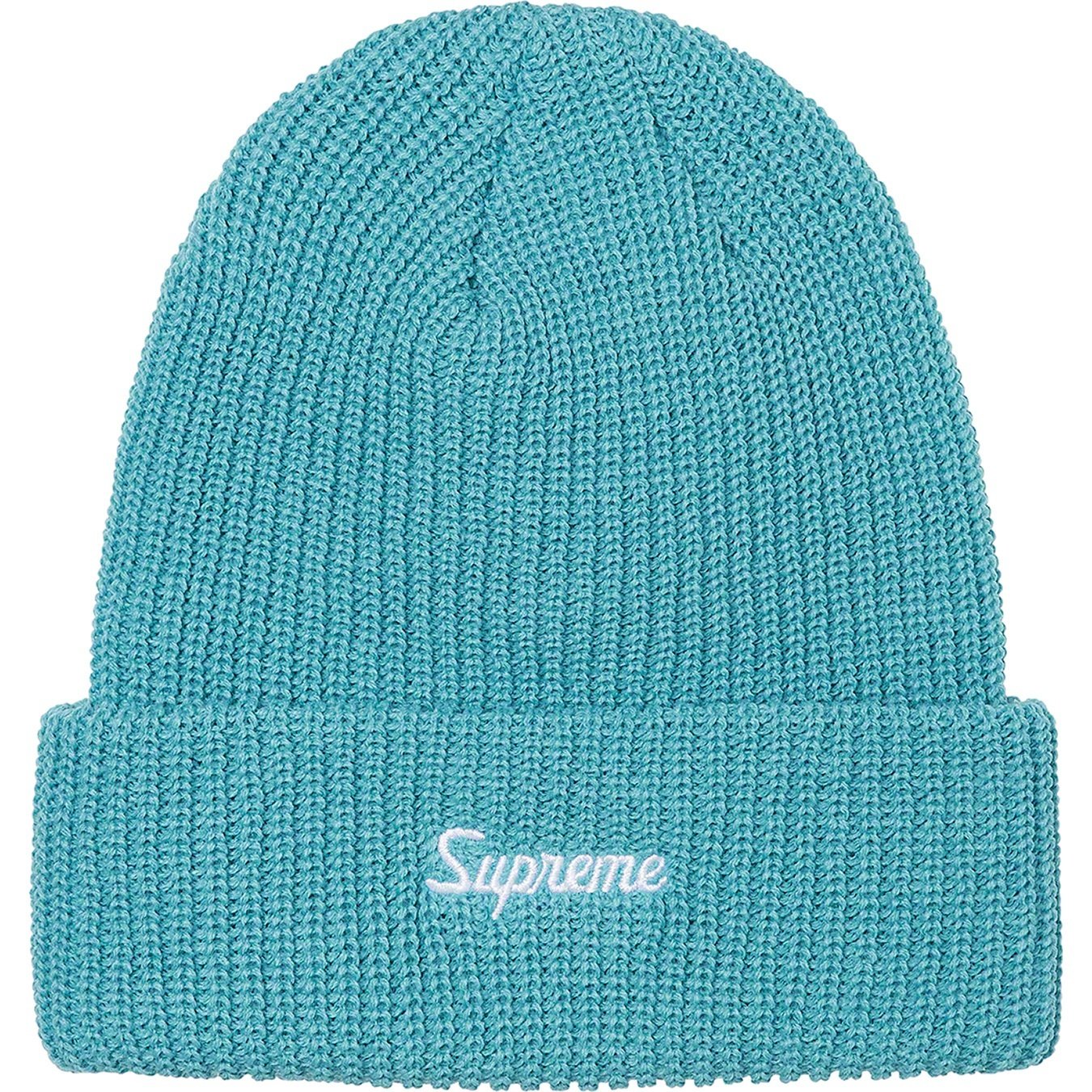 Acrylic cuffed loose gauge beanie with embroidered logo on cuff.