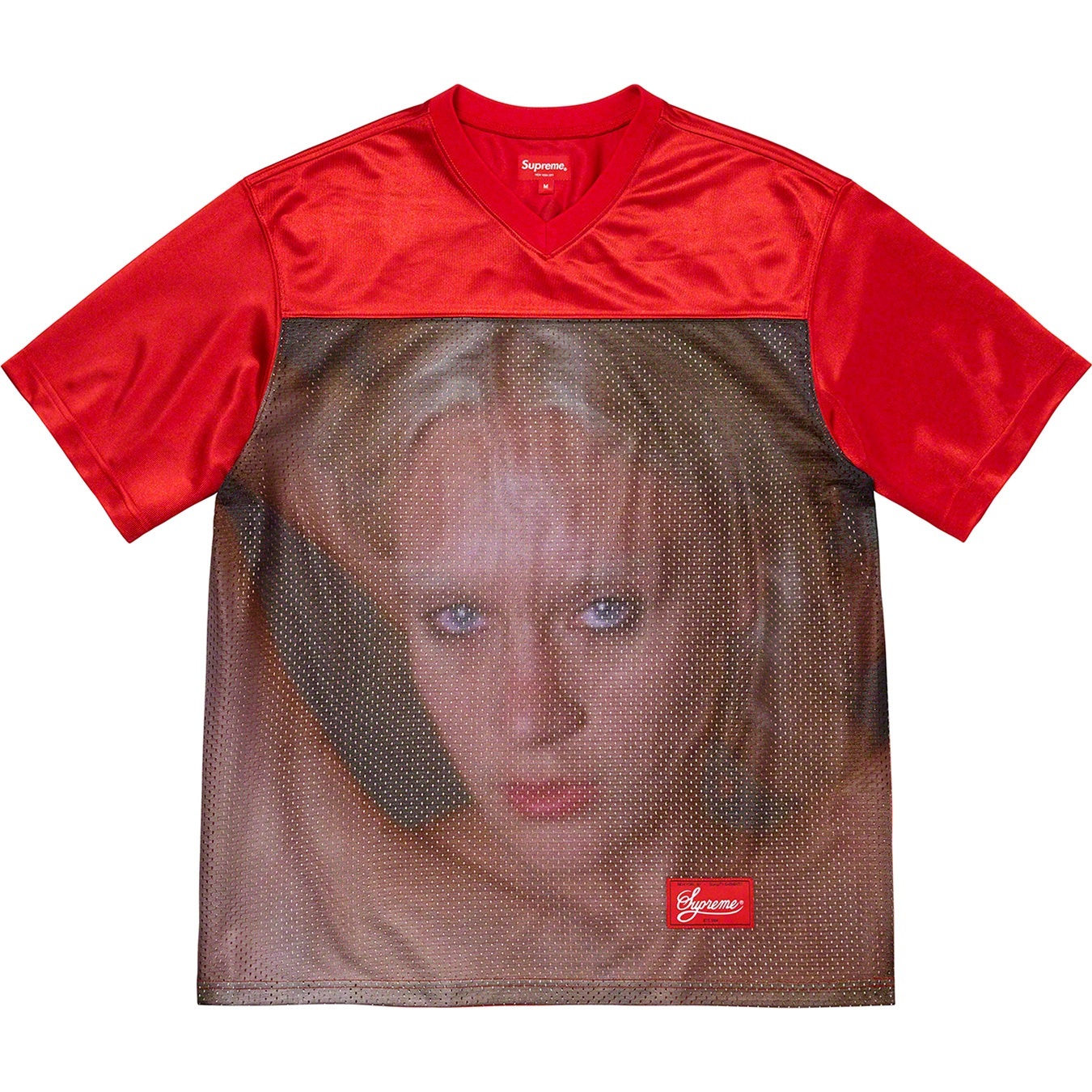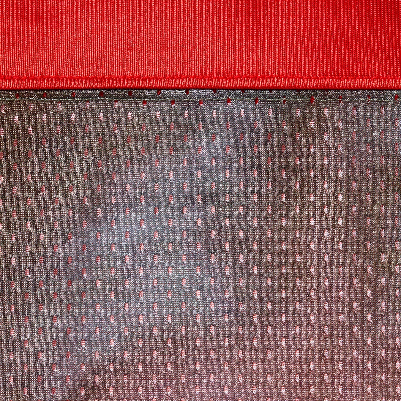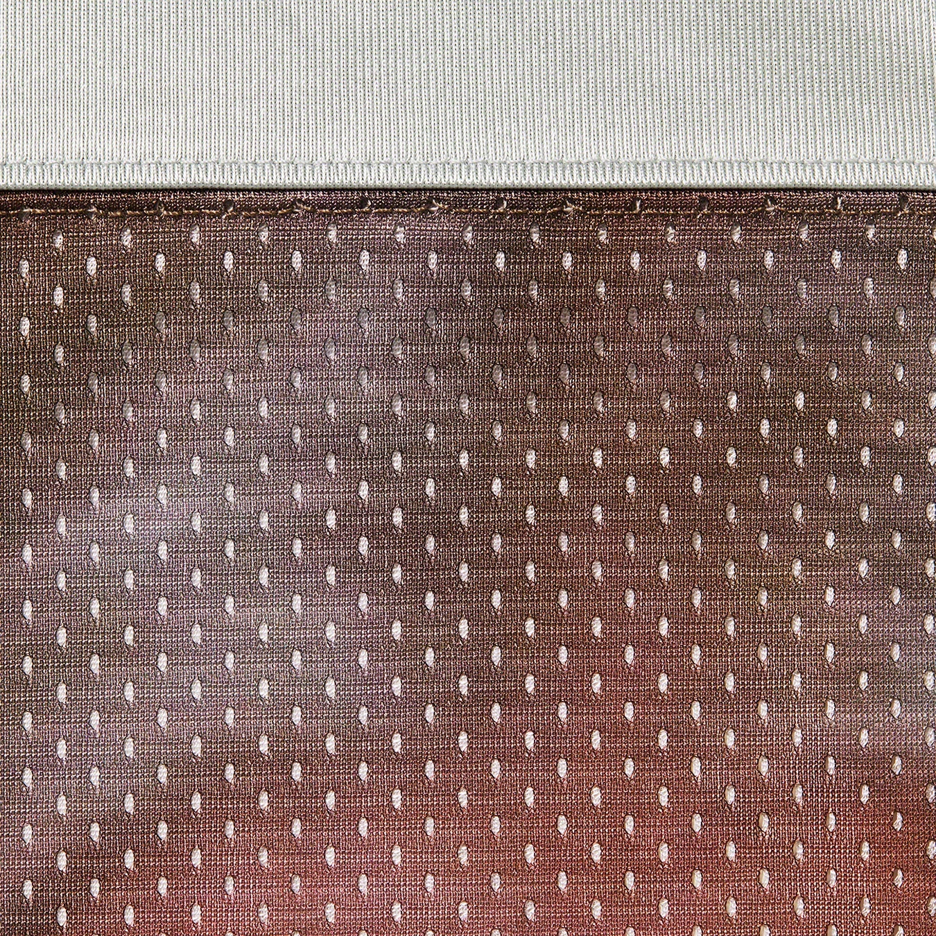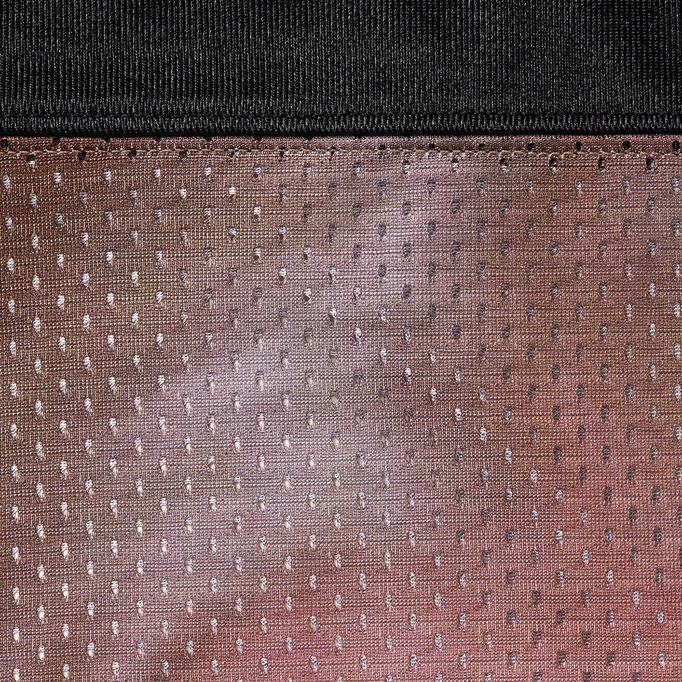 Poly dazzle and eyelet mesh. Printed graphic on front and back. Woven logo label at lower front.