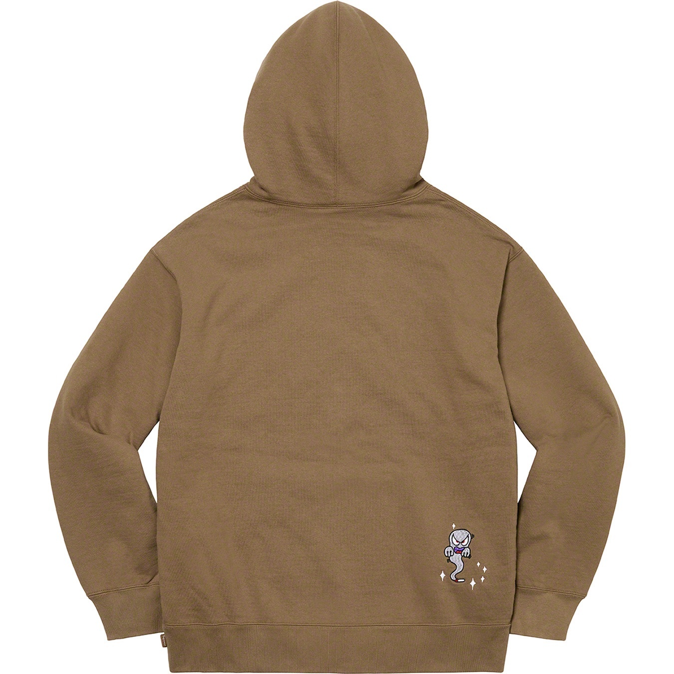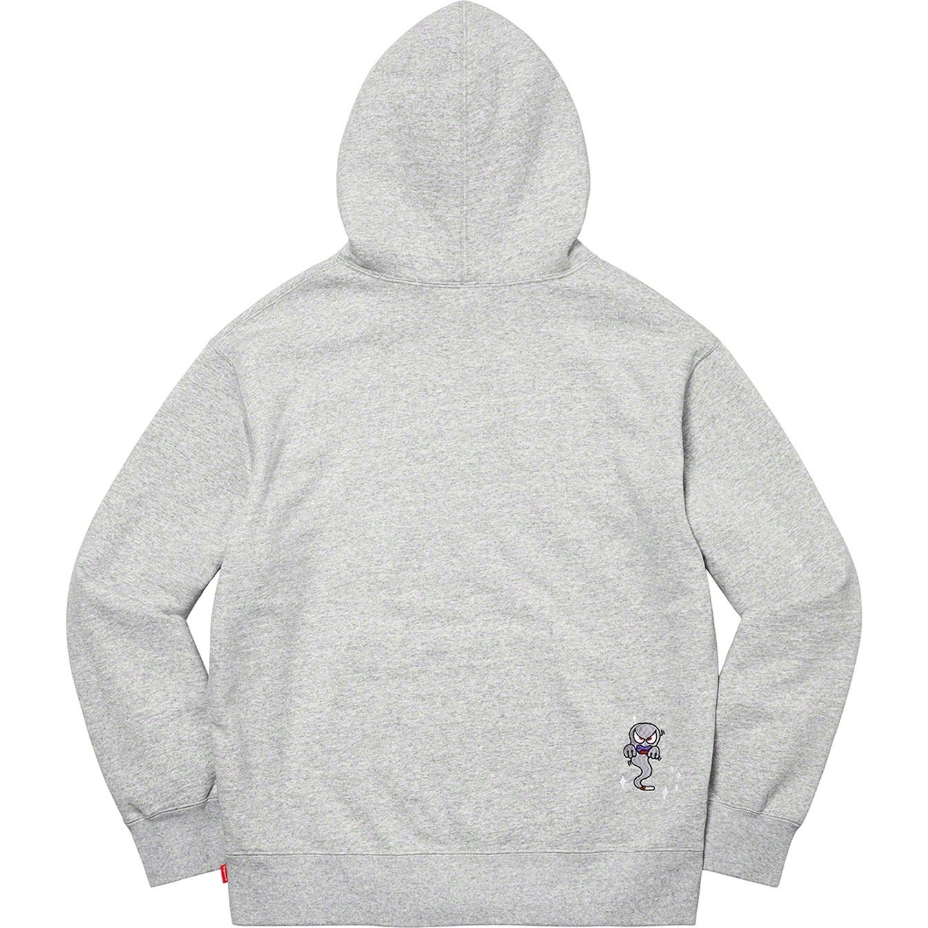Brushed-back fleece with pouch pocket. Embroidered graphics on chest and back hem. Original embroidered artwork by AOI.