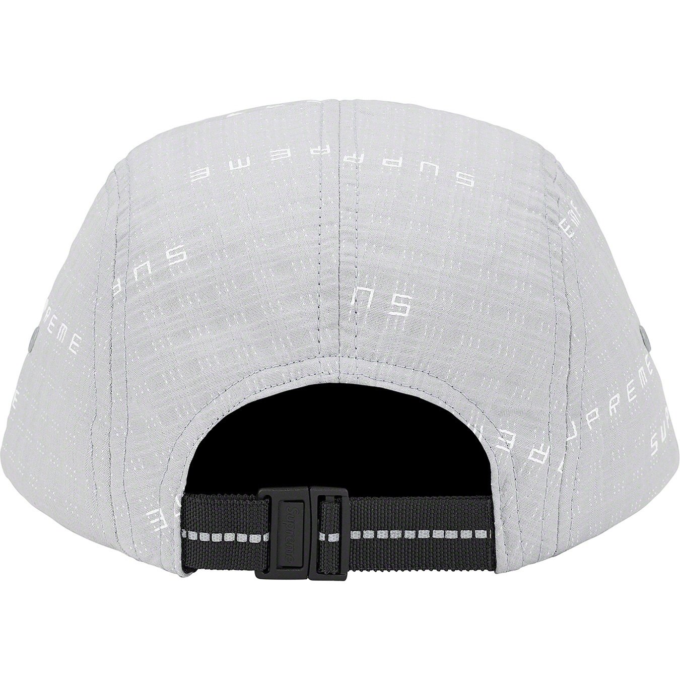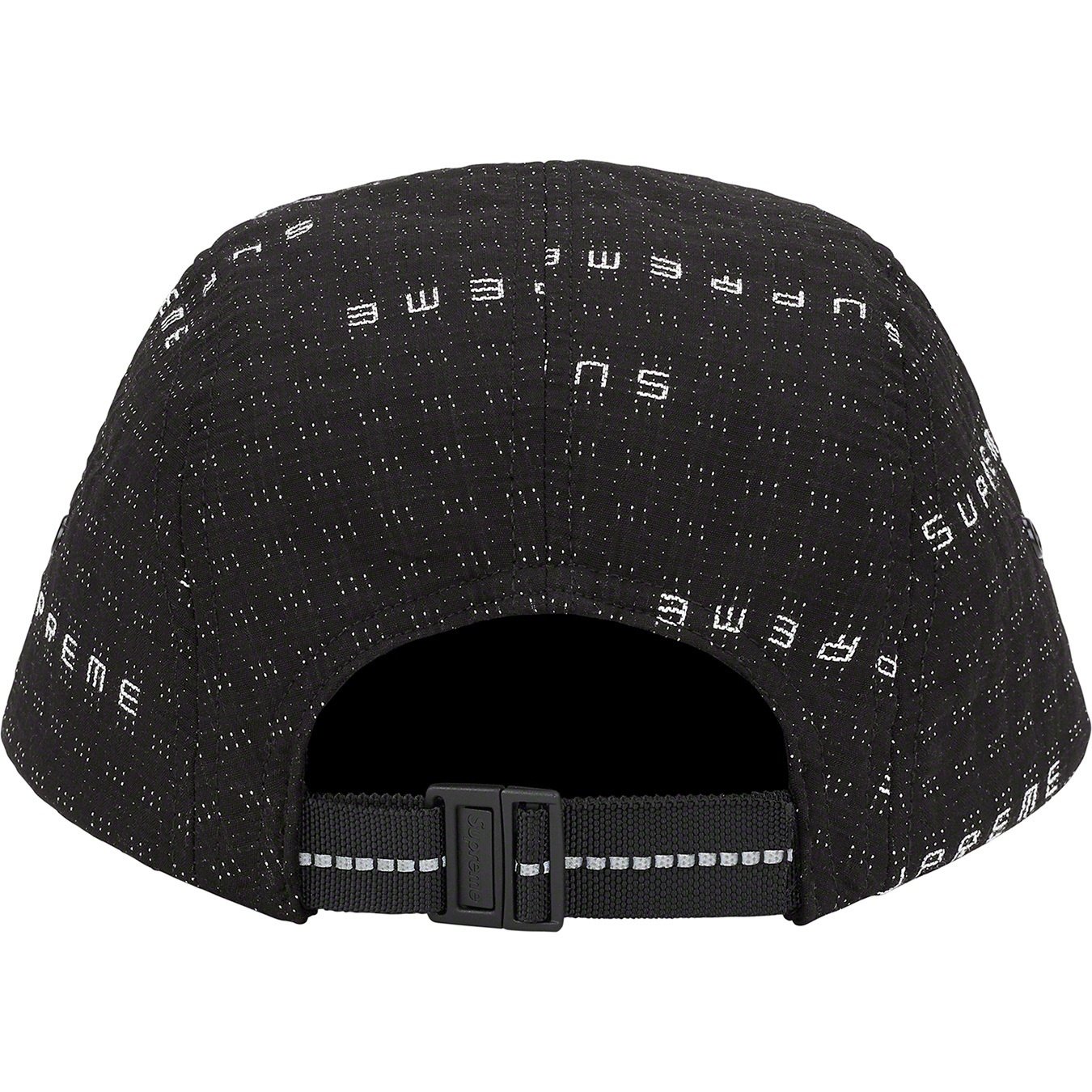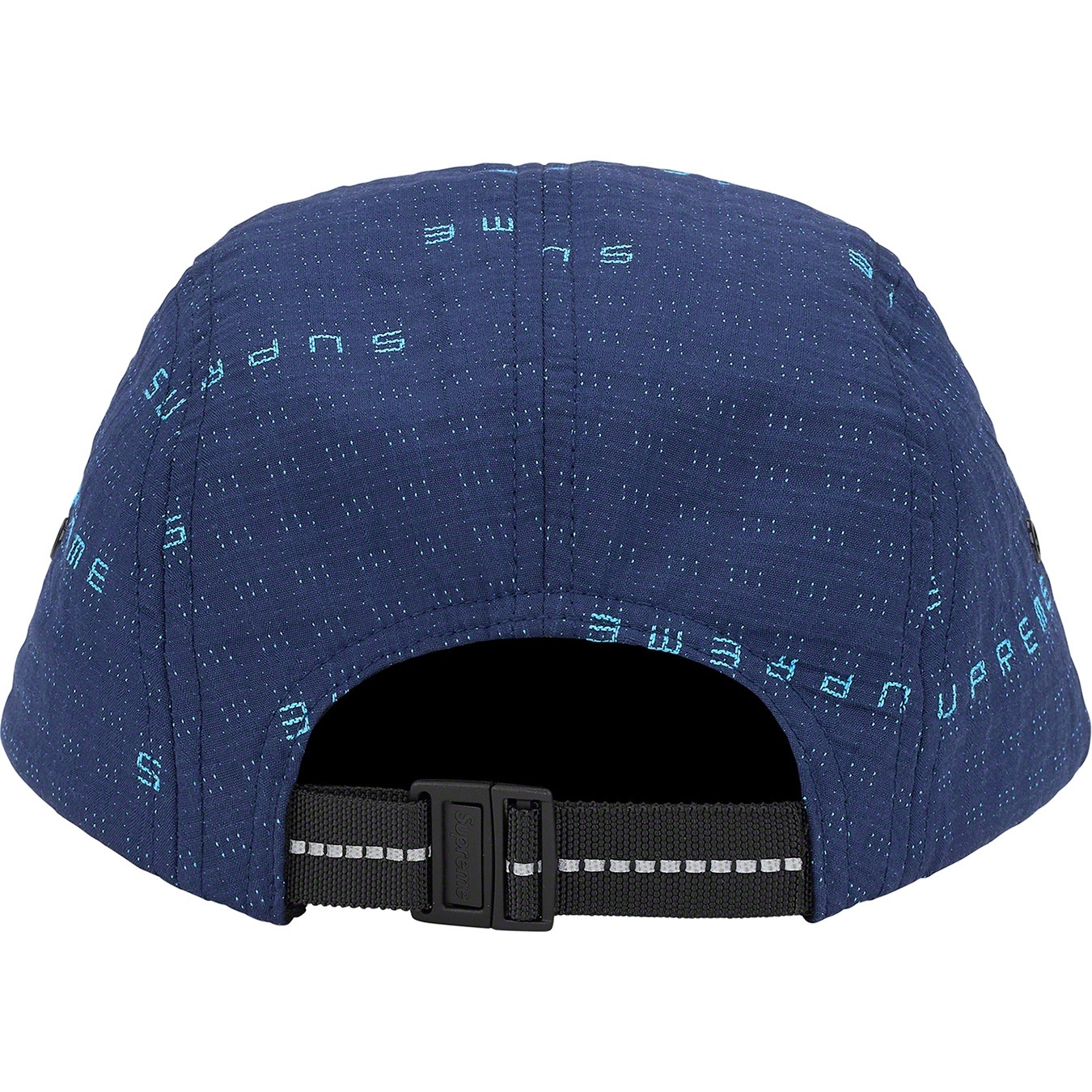 All cotton Supreme camp cap with jacquard logo pattern.