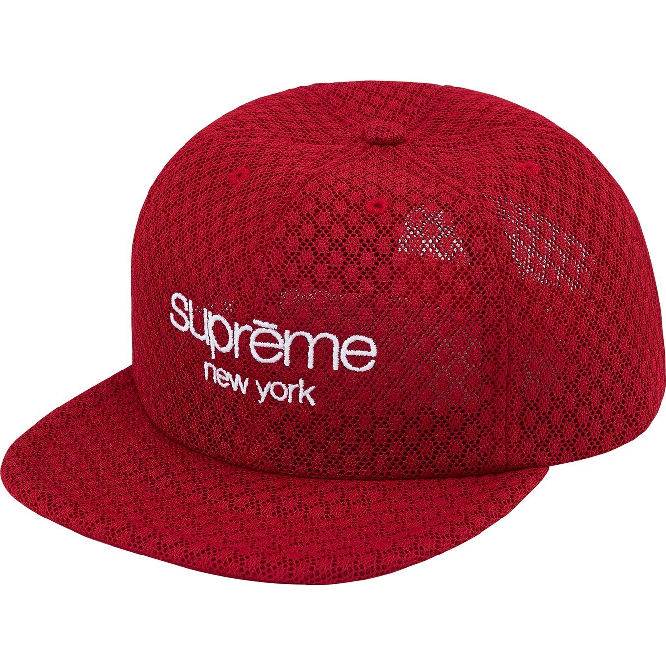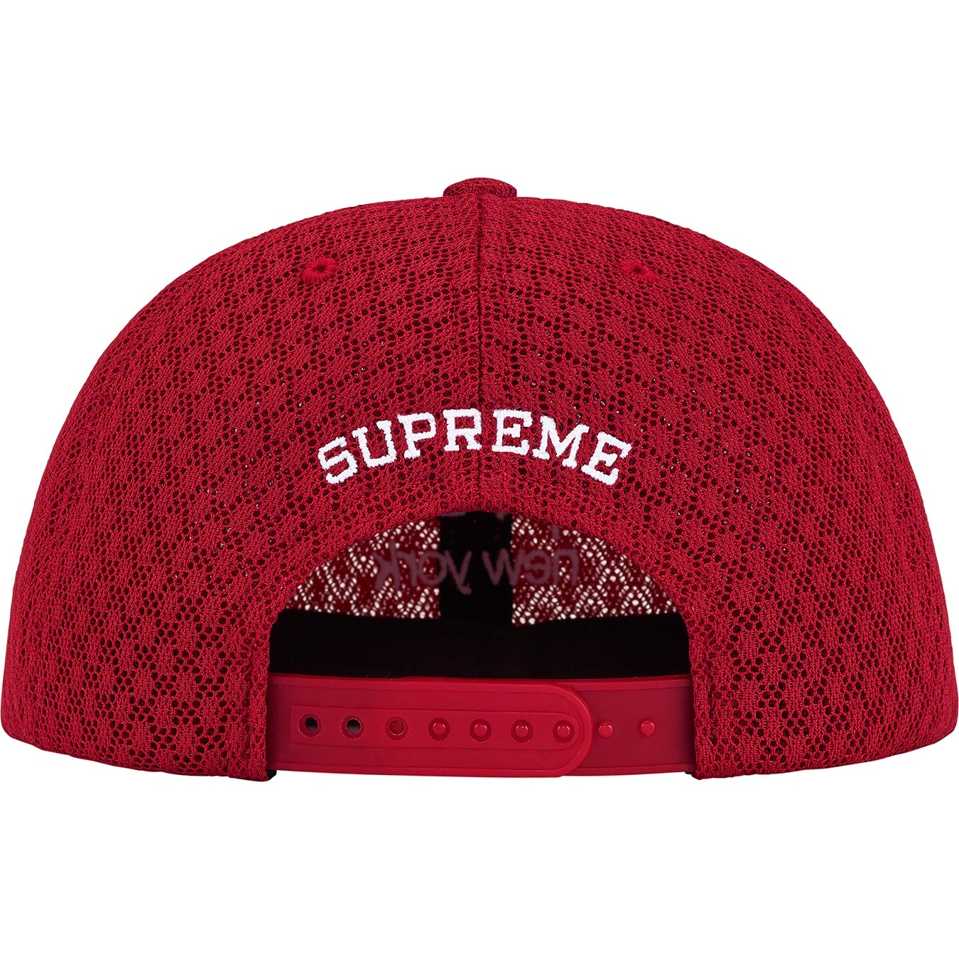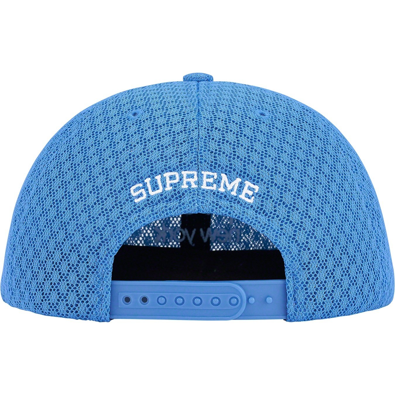 Poly air mesh 6-Panel hat with snap closure. Embroidered logos on front and back.