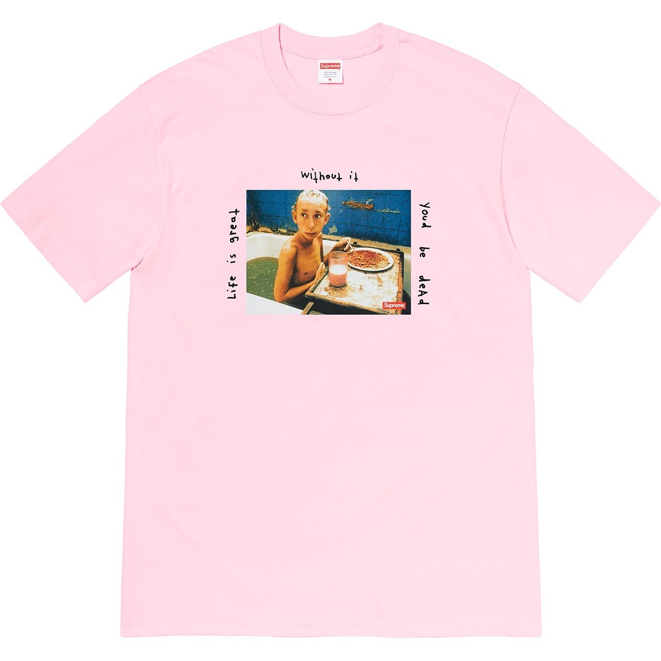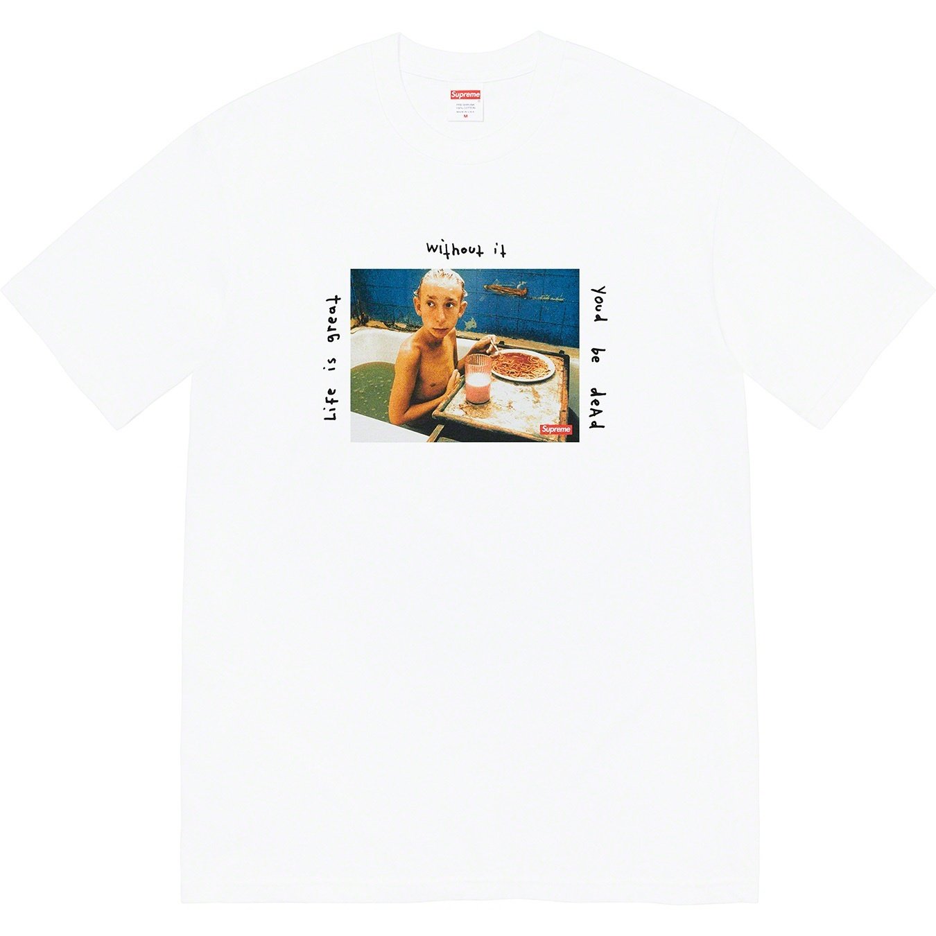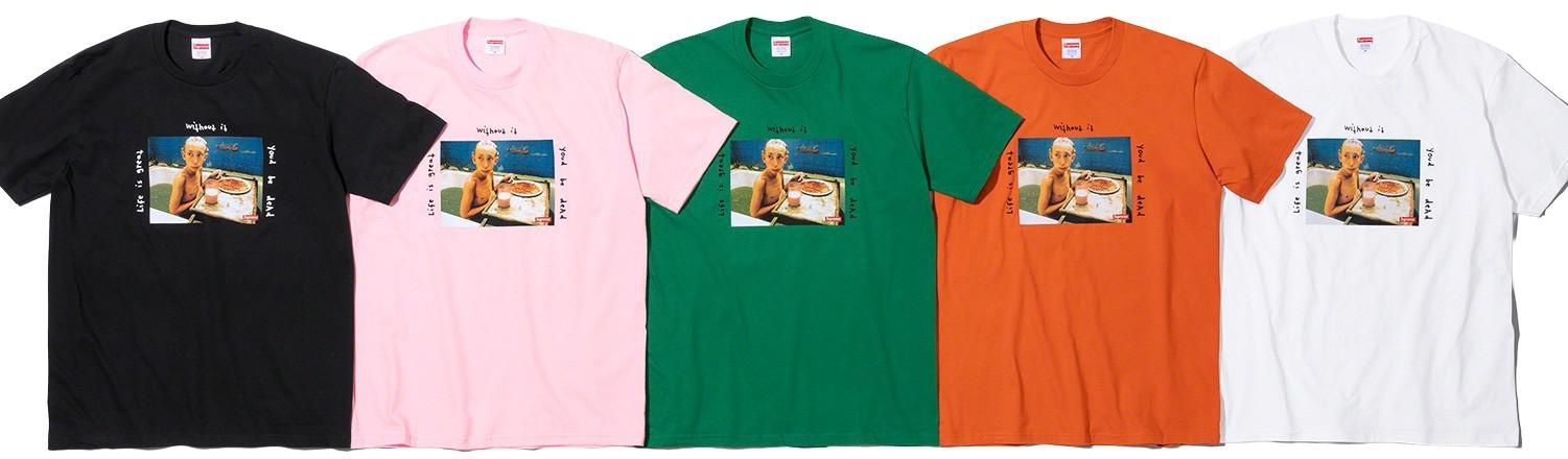 All cotton classic Supreme t-shirt with printed graphic on front and back. Original artwork by Harmony Korine.