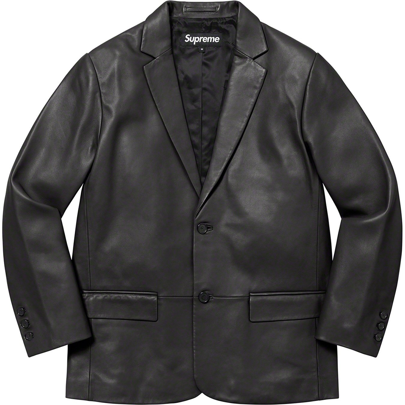 Lambskin leather with jacquard logo viscose lining and two-button closure. Welt pockets with flap at hip and interior chest pocket. Notch lapel and functional buttons at sleeve.