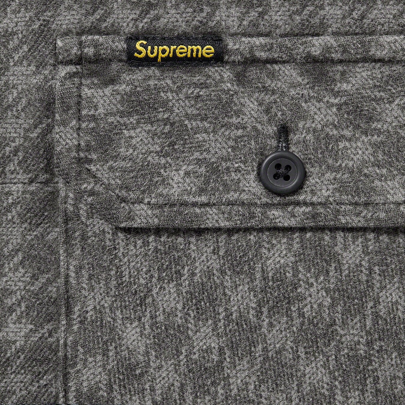 All cotton flannel with cotton thermal lining and hood. On seam hand pockets and button flap patch pockets at chest.
