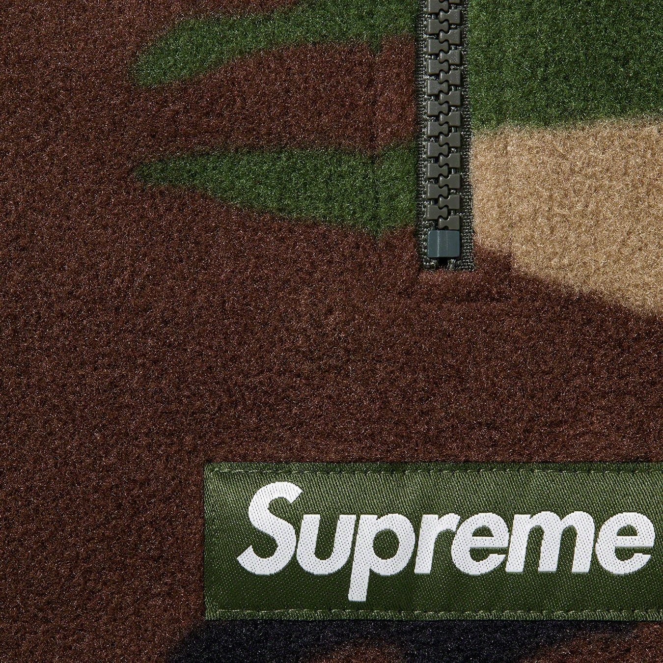 Polartec® 200 fleece with half zip closure and welt zip hand pockets at lower front. Elastic binding at fixed facemask hood. Elastic cuffs and hem with interior elastic shockcord. Woven logo label at chest and embroidered logo on cuff.