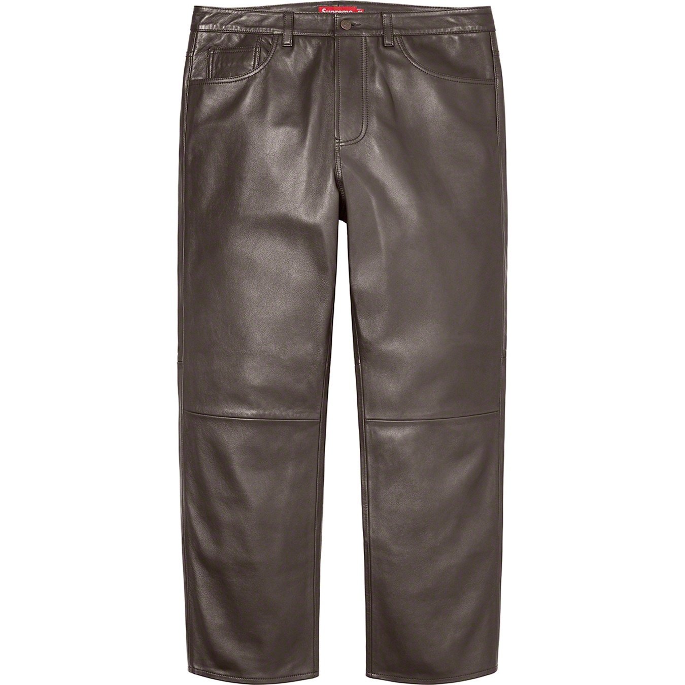Lambskin leather with taffeta lining. Classic 5-pocket style with zip fly, single coin pocket and leather logo patch on back.
