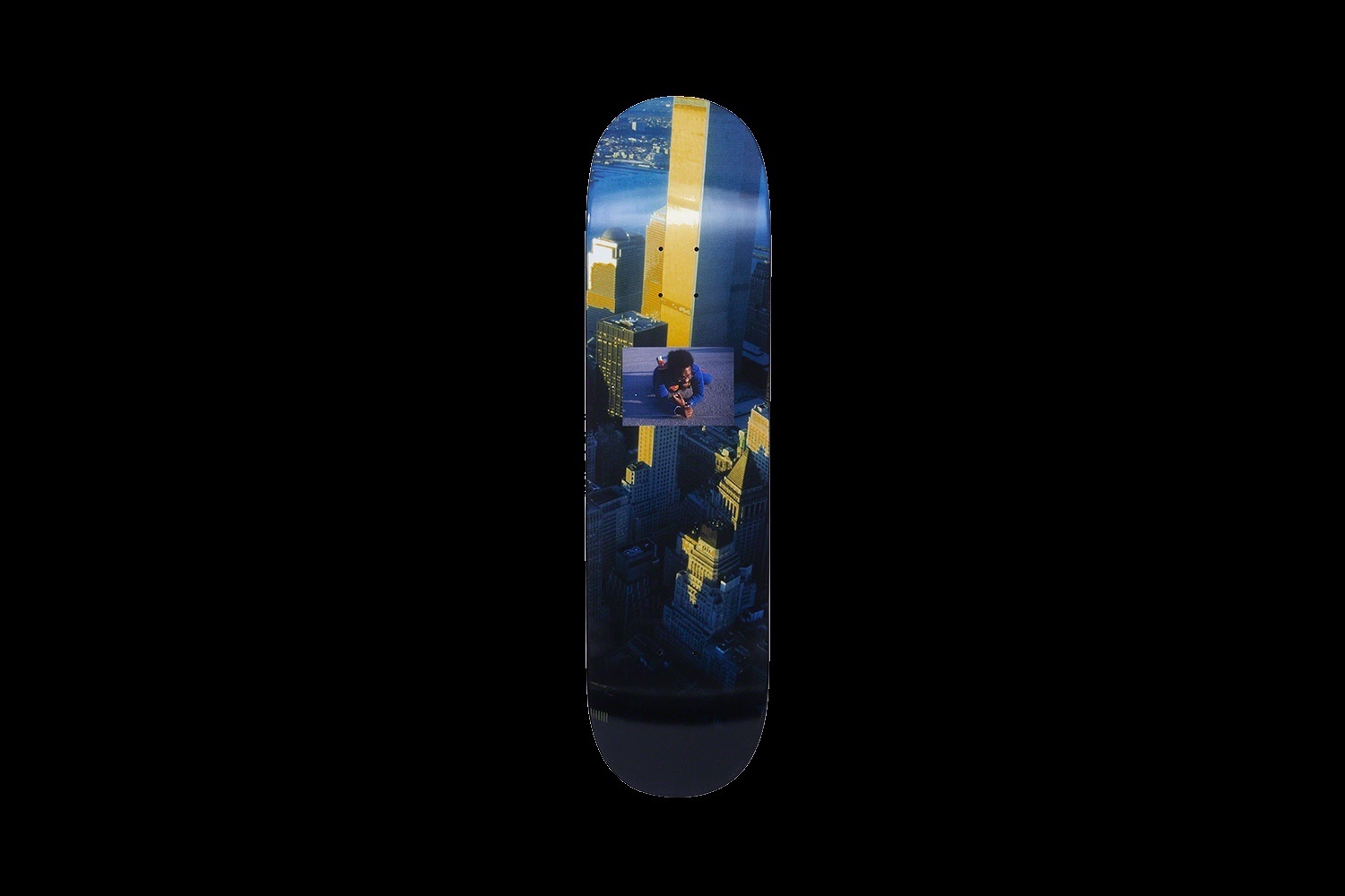 Full dipped Supreme skate deck with printed graphic on bottom. Artist's signature and box logo on top. Original artwork by Pope.L.