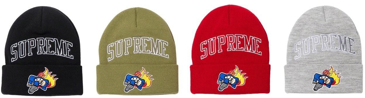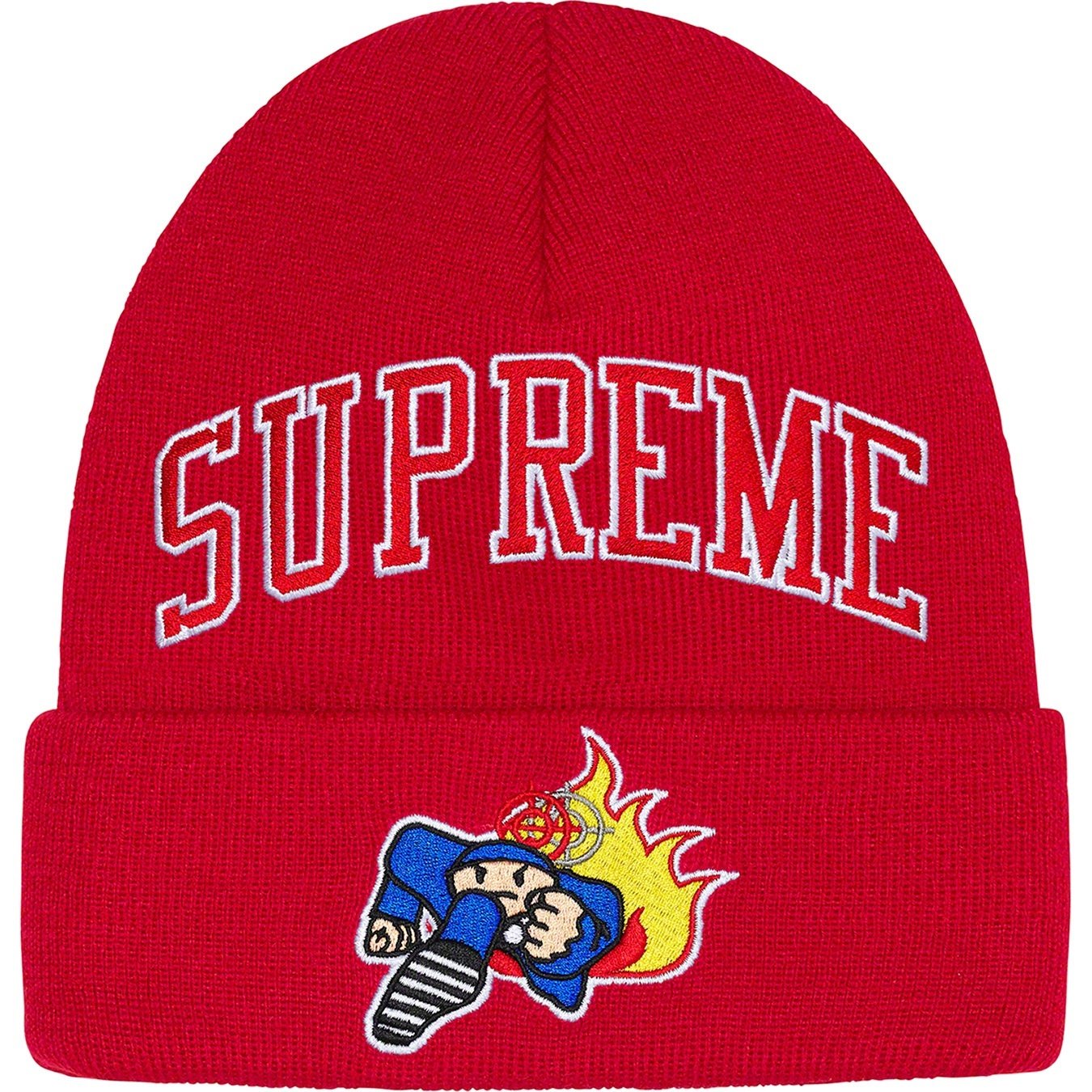 Acrylic cuffed beanie with embroidered logo on crown and embroidered graphic on cuff.