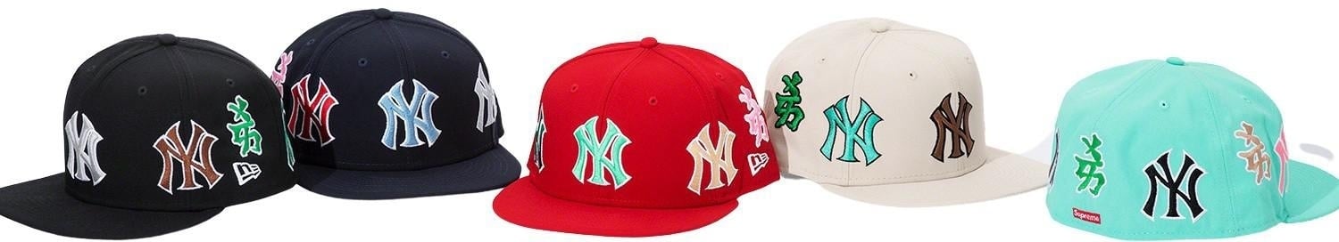Poly New Era® 59FIFTY baseball hat with embroideries on front, sides and back. Official Yankees™ merchandise made exclusively for Supreme.