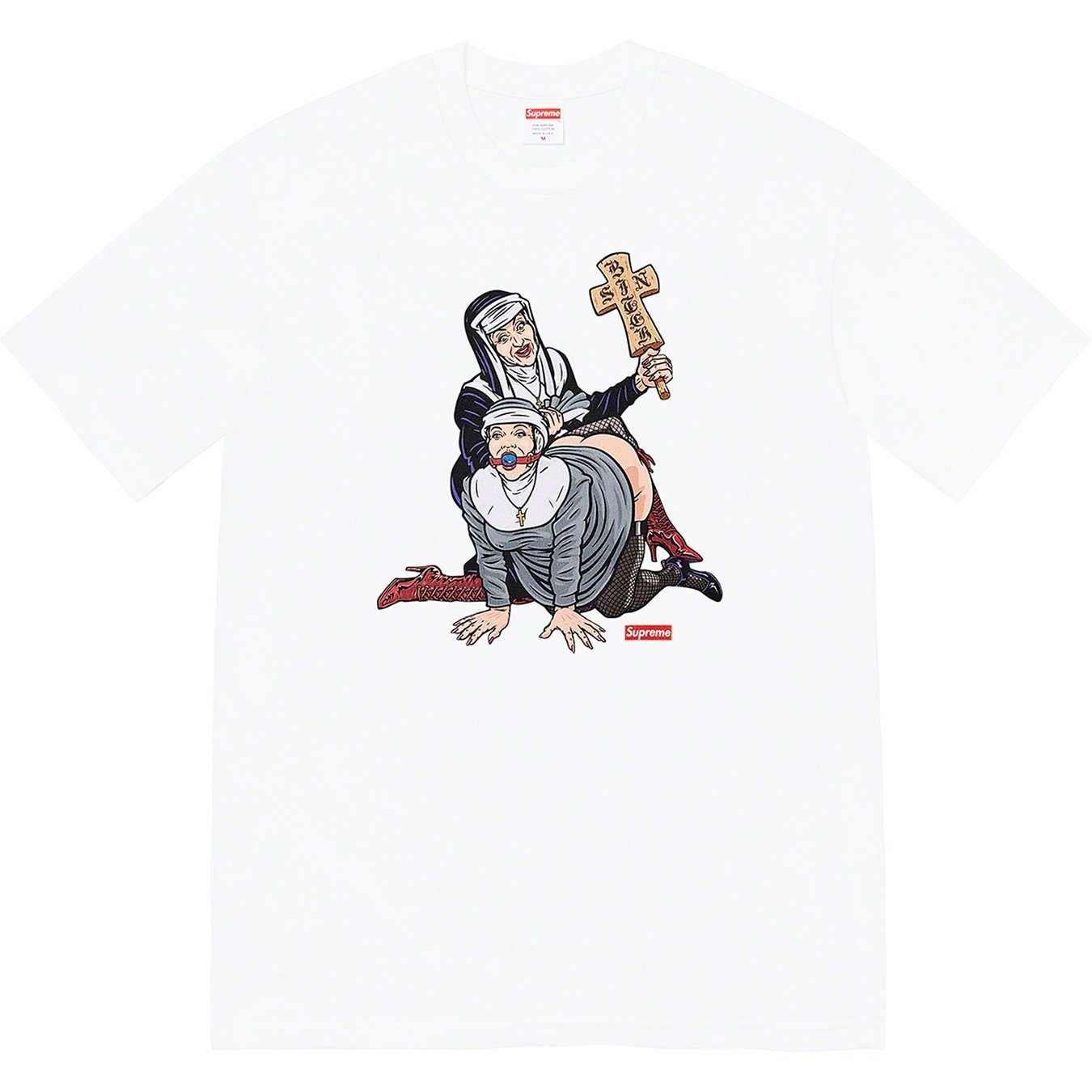 All cotton classic Supreme t-shirt with printed graphic on front and back hem. Original artwork by Sean Cliver.
