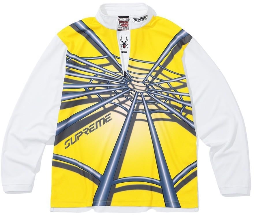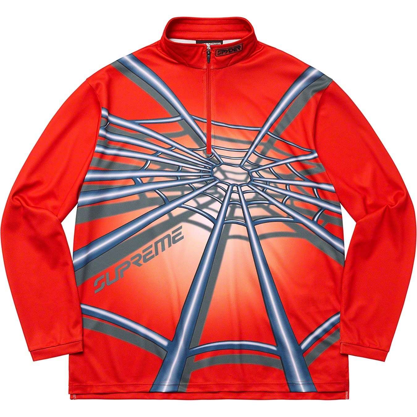 Poly knit with printed graphic and half zip closure. Rubber logo patch at collar. Printed logos at closure and back neck. Made exclusively for Supreme.