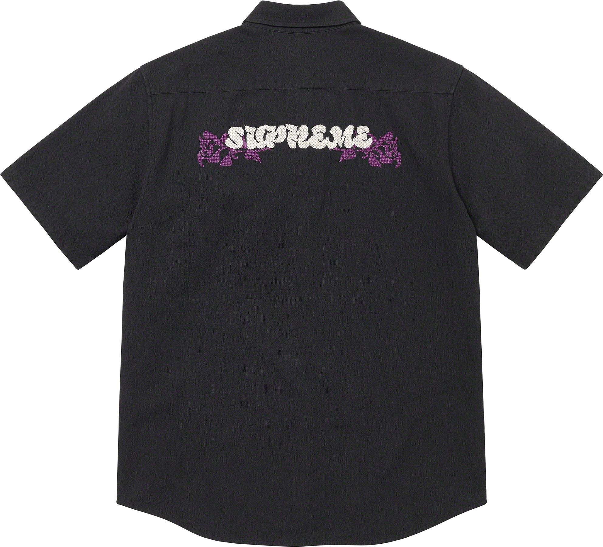 All cotton with needlepoint embroidered graphic at front and logo at back.