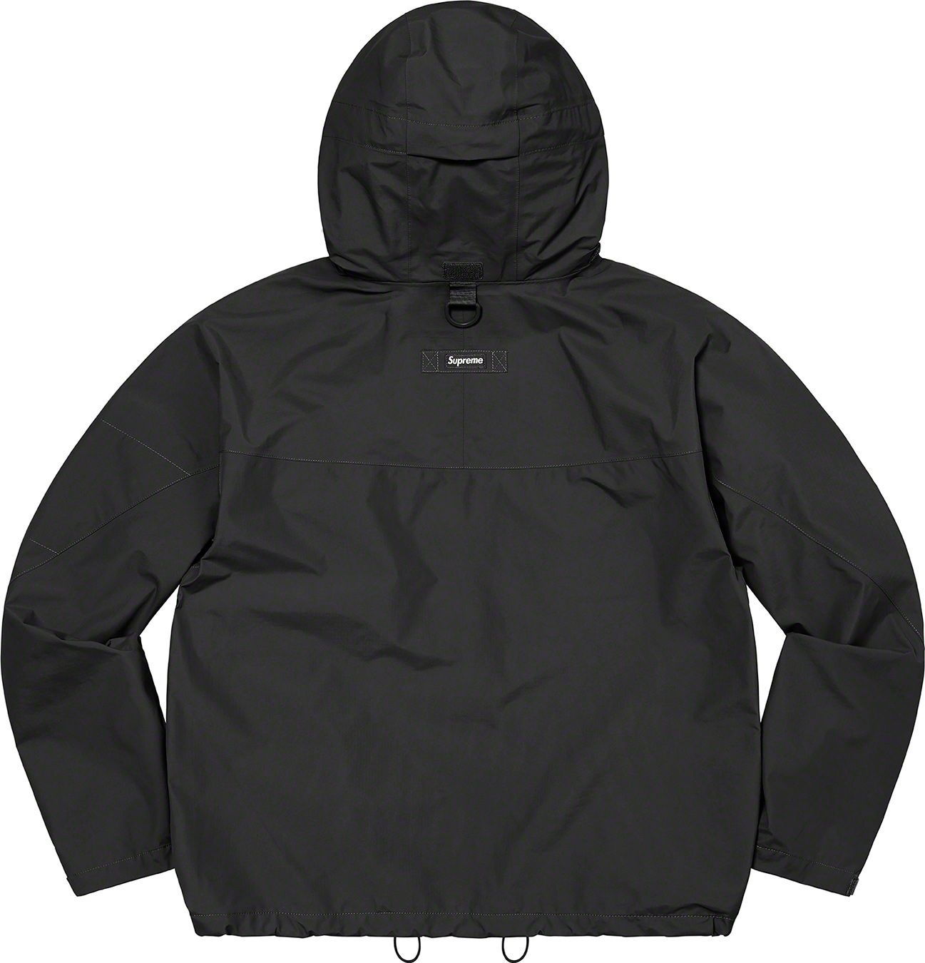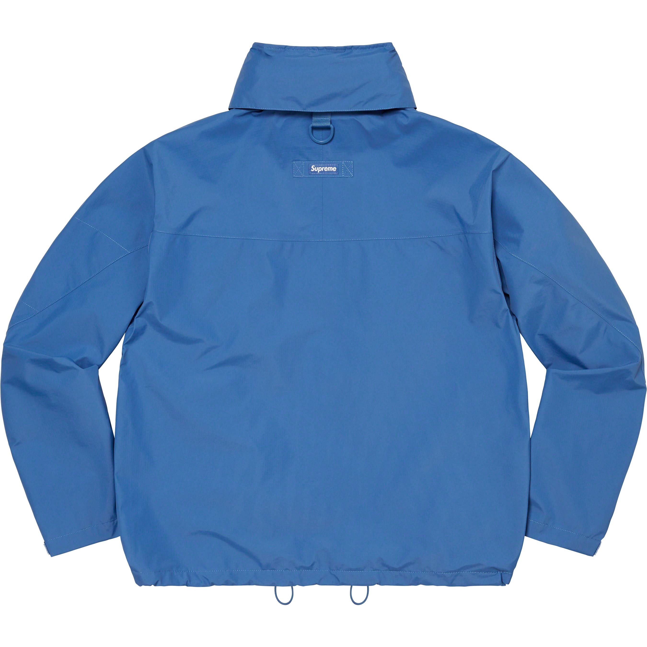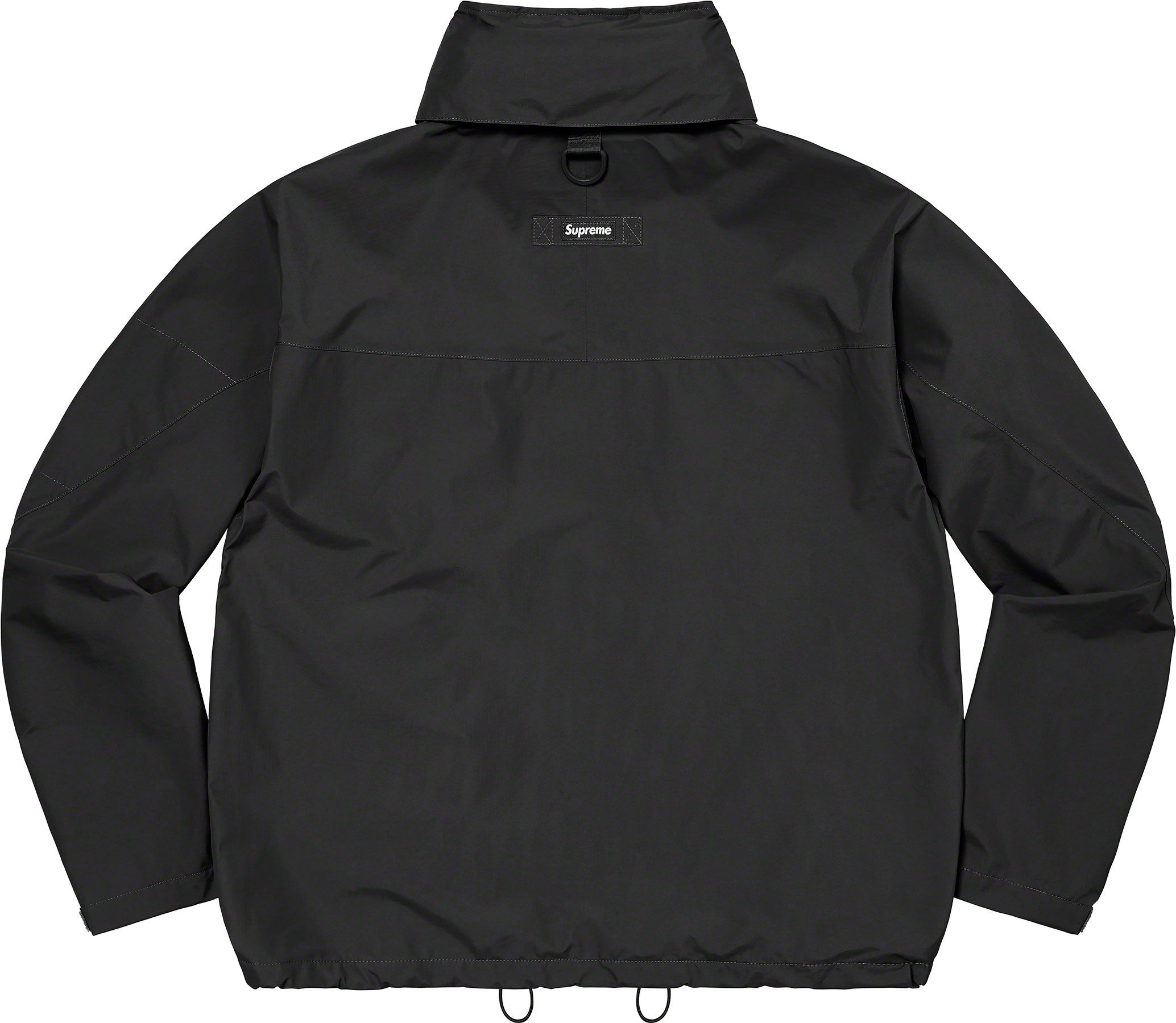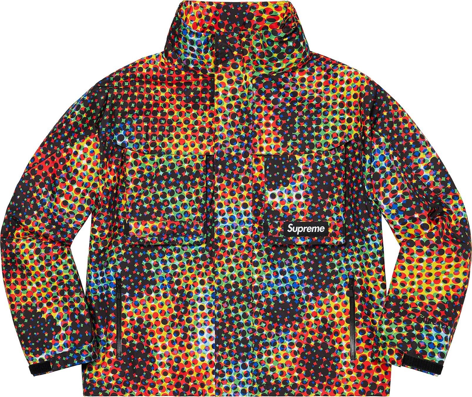Waterproof, breathable GORE-TEX PACLITE® ripstop shell with taped seams. Full zip closure with hidden velcro placket. Zip hand pockets at lower front. Velcro flap patch pockets at chest with dual top and side entry. Hidden zip pocket at sleeve. Interior elastic shockcord at packable hood and hem with velcro tab adjusters at cuffs. Side zip gussets with perforated logos. Woven logo labels at chest pocket and back neck tab. Embroidered logos at hood and cuff.
