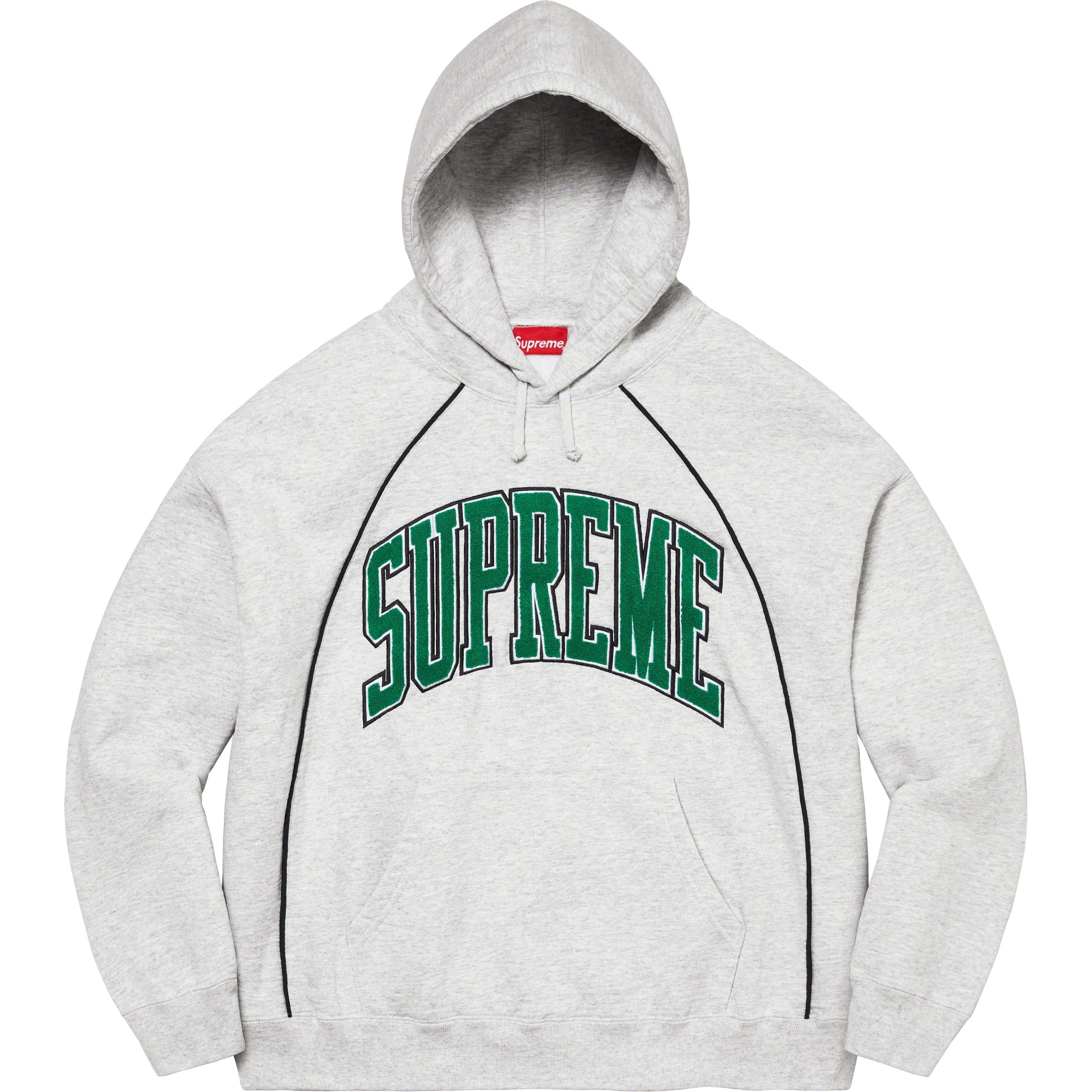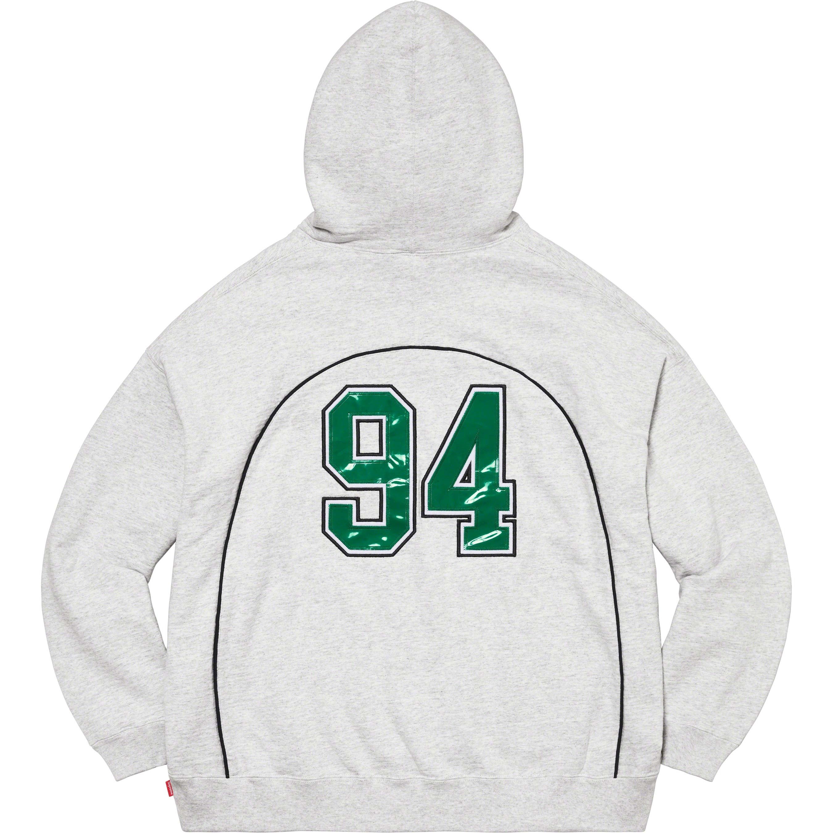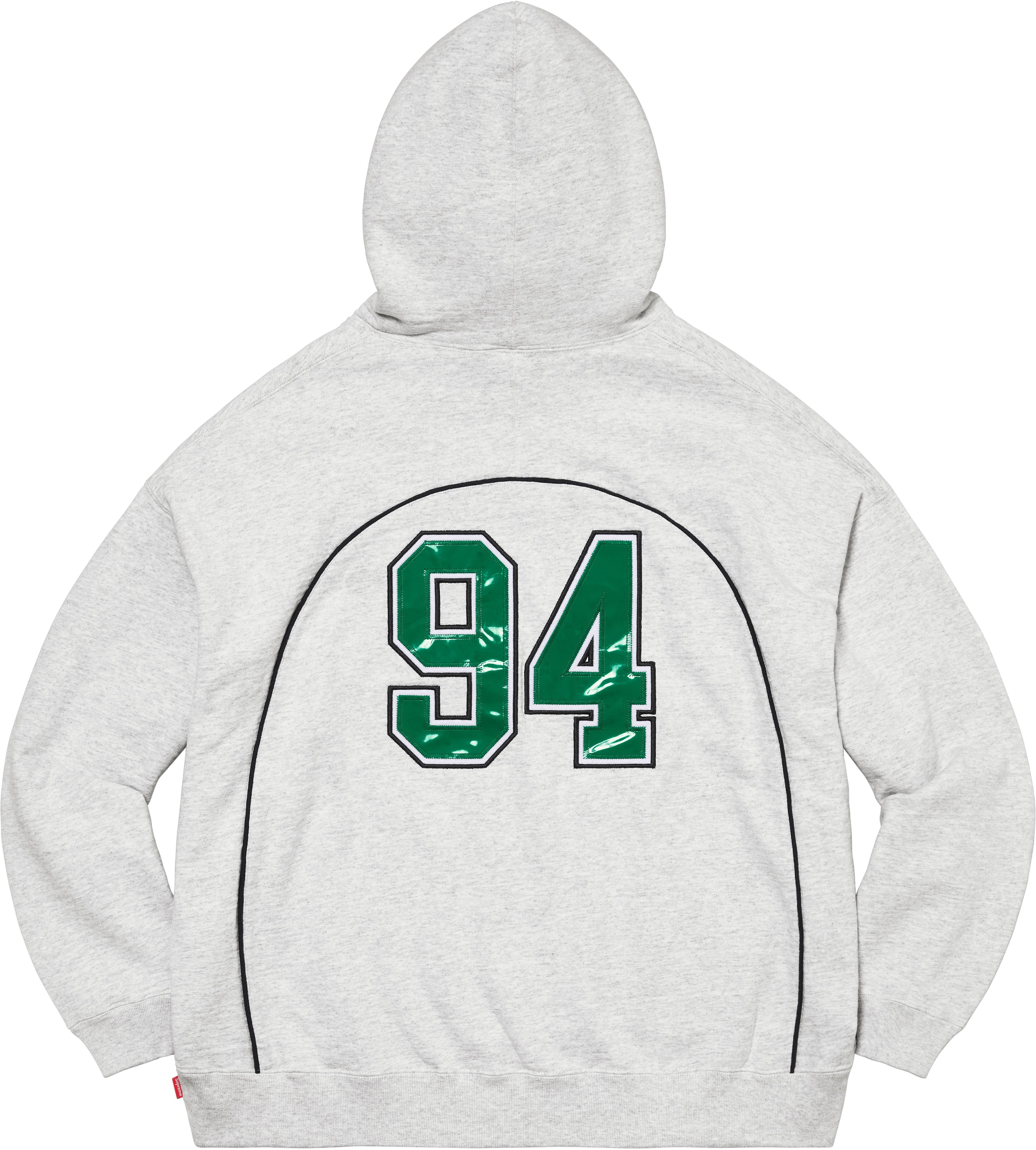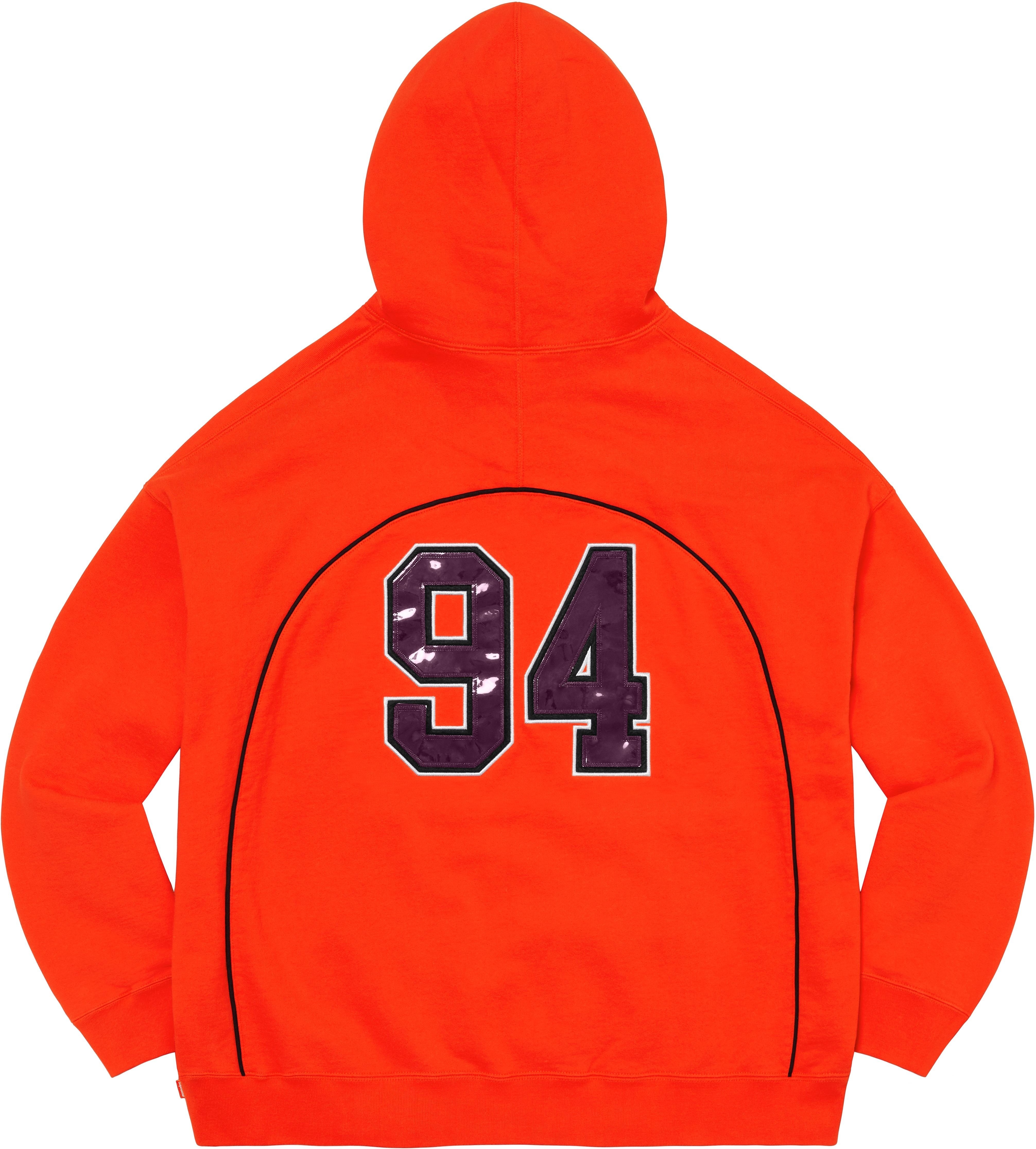 Brushed-back fleece with boxy fit and pouch pocket. Chenille embroidered logo on chest. Vinyl graphic appliqué on back.